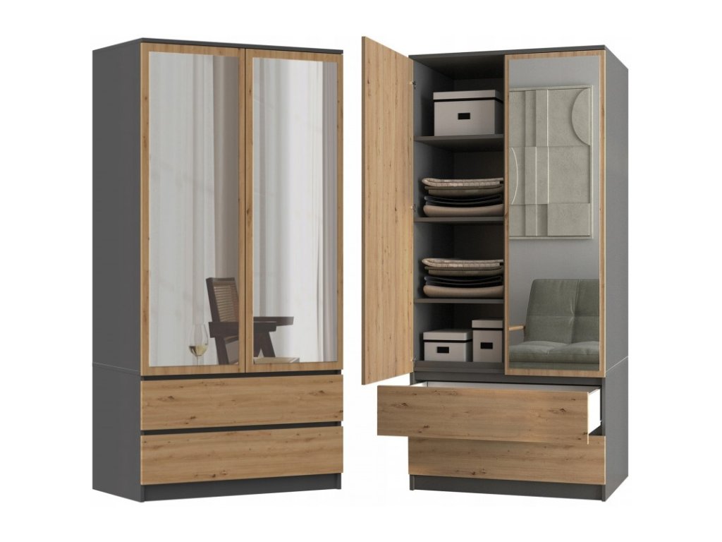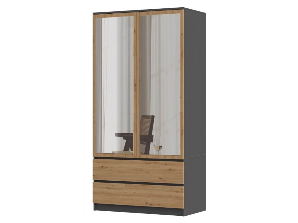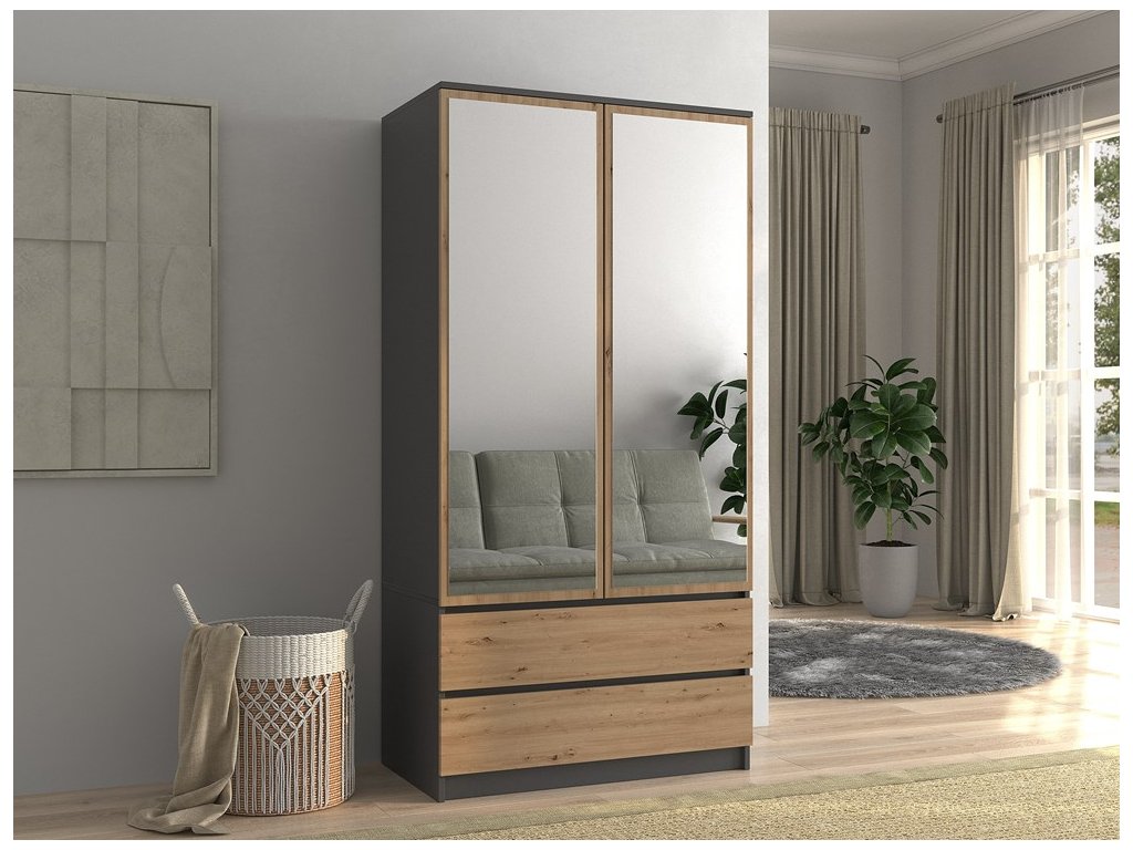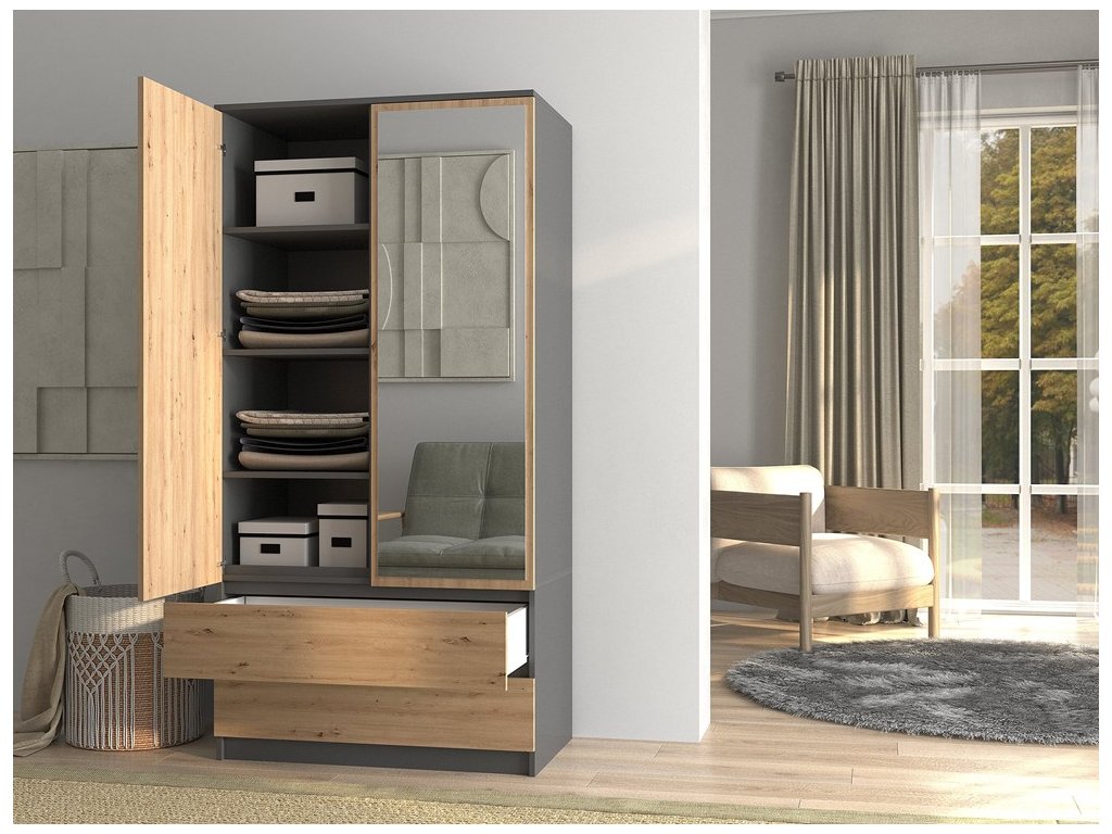Šatní skříň Malvína 2S-90 antracit/dub artisan/zrcadlo