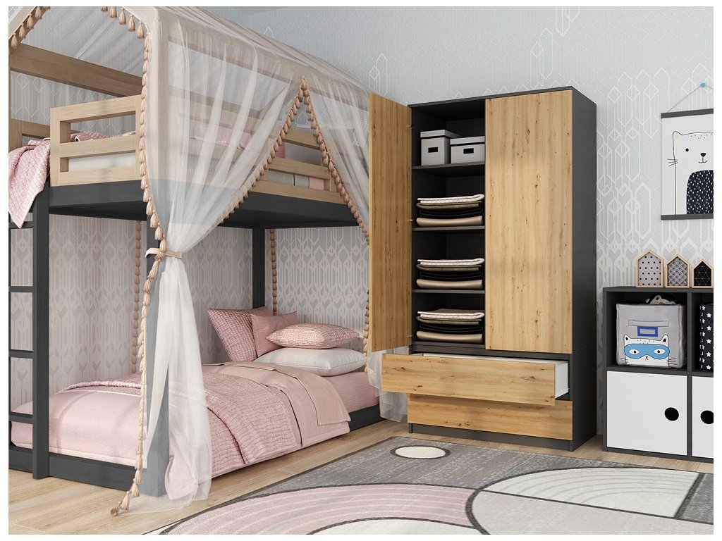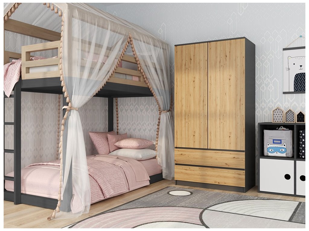Šatní skříň Malvína 2S-90 antracit/dub artisan