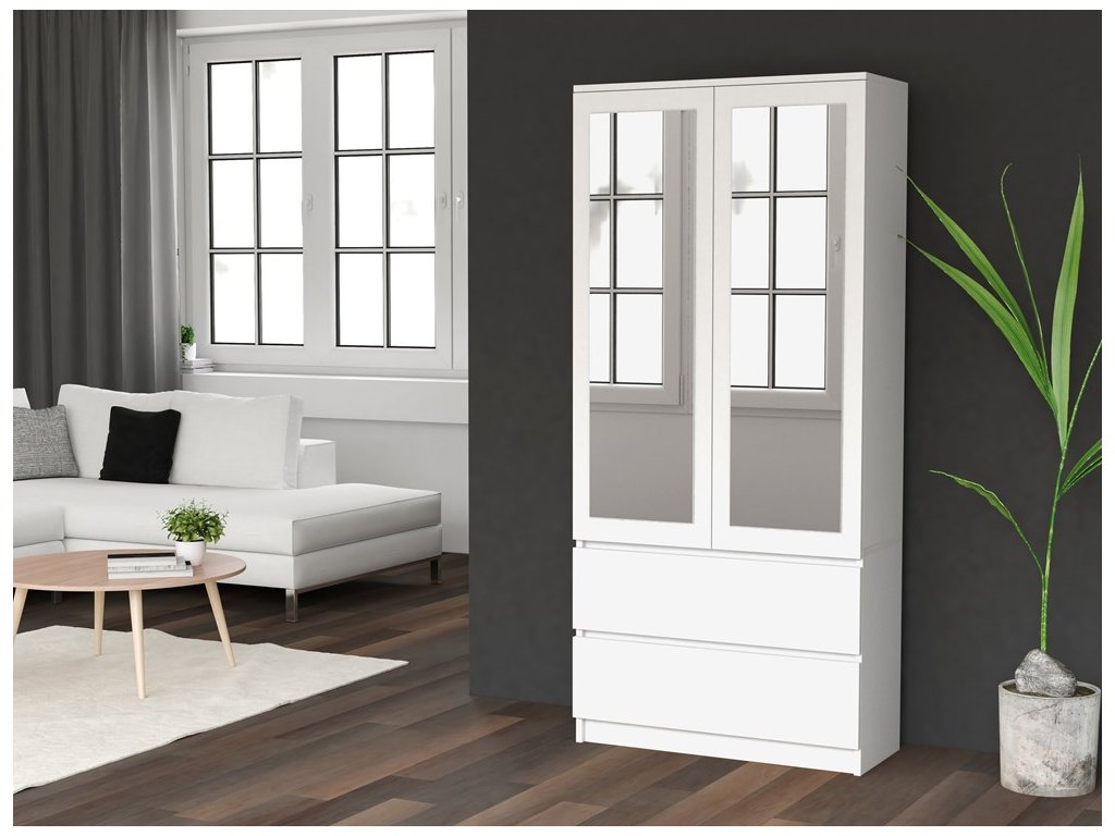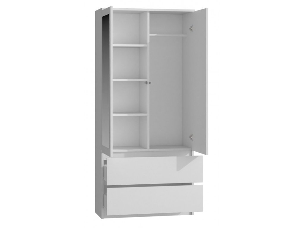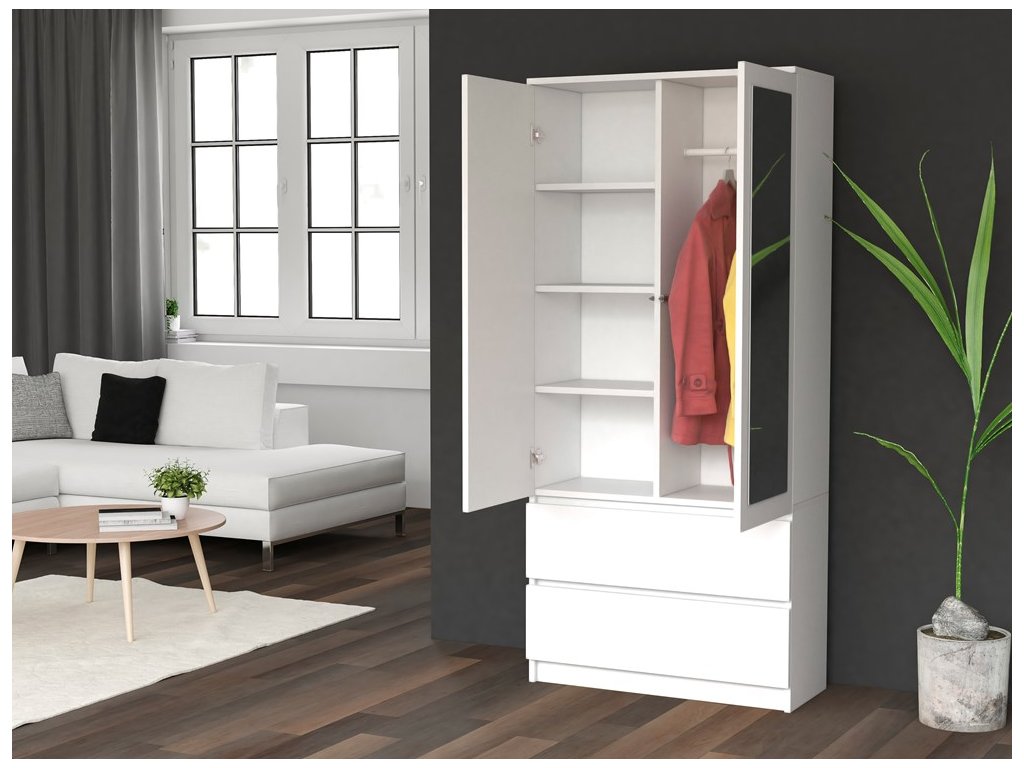 Šatní skříň Malvína 2S-90 bílá/zrcadlo