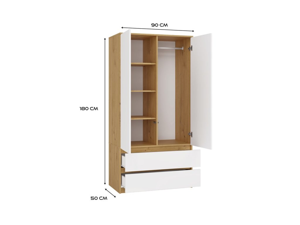 Šatní skříň Malvína 2S-90 dub artisan/bílá