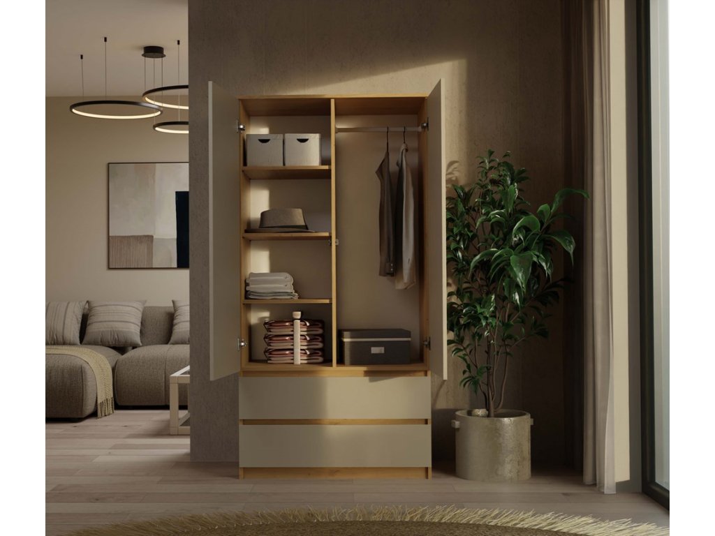 Šatní skříň Malvína 2S-90 dub artisan/kašmír