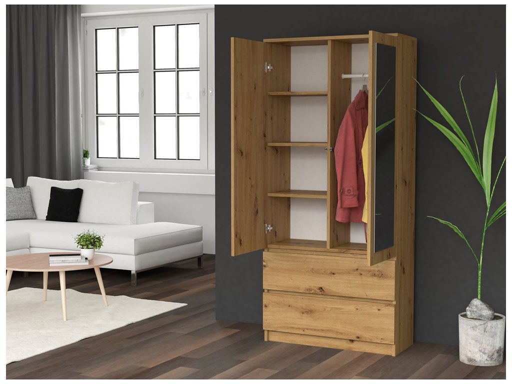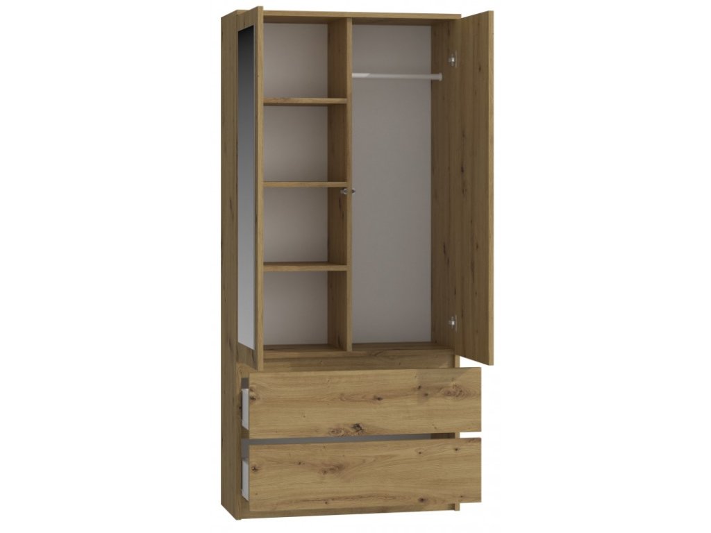Šatní skříň Malvína 2S-90 dub artisan/zrcadlo