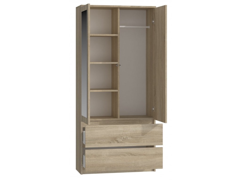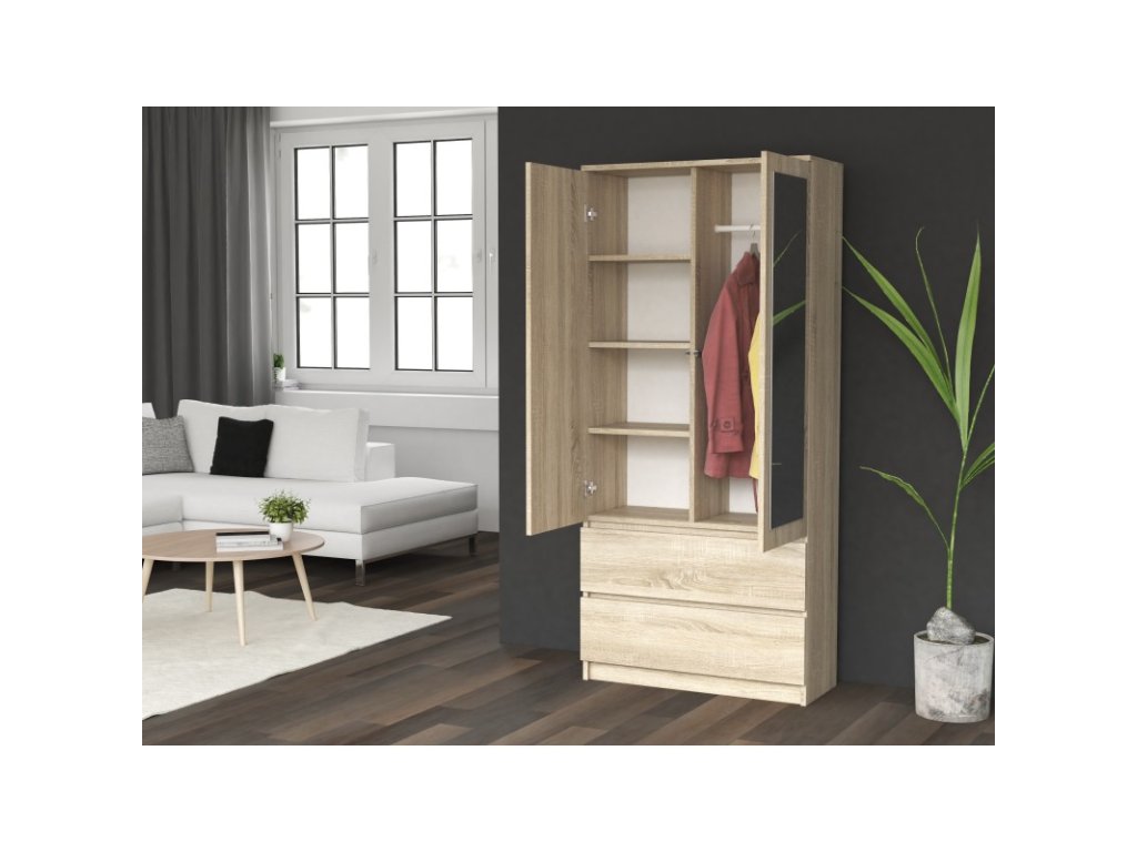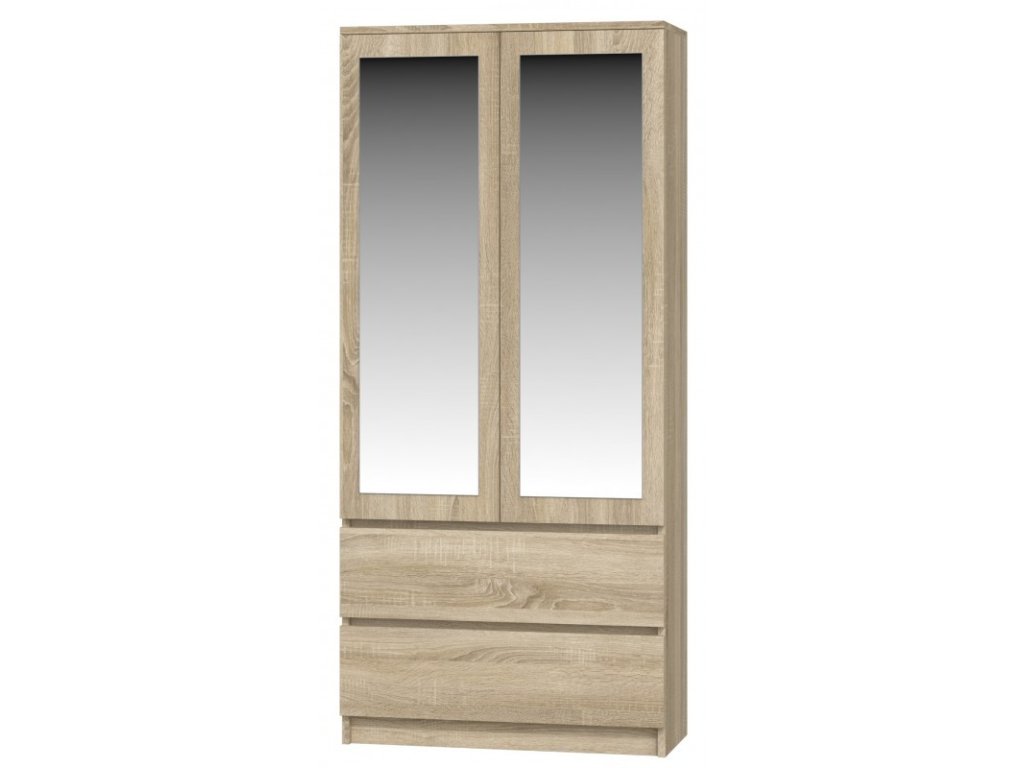 Šatní skříň Malvína 2S-90 dub sonoma/zrcadlo