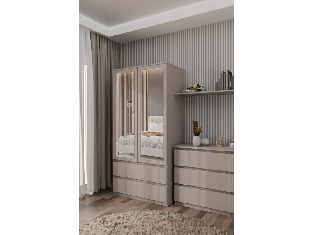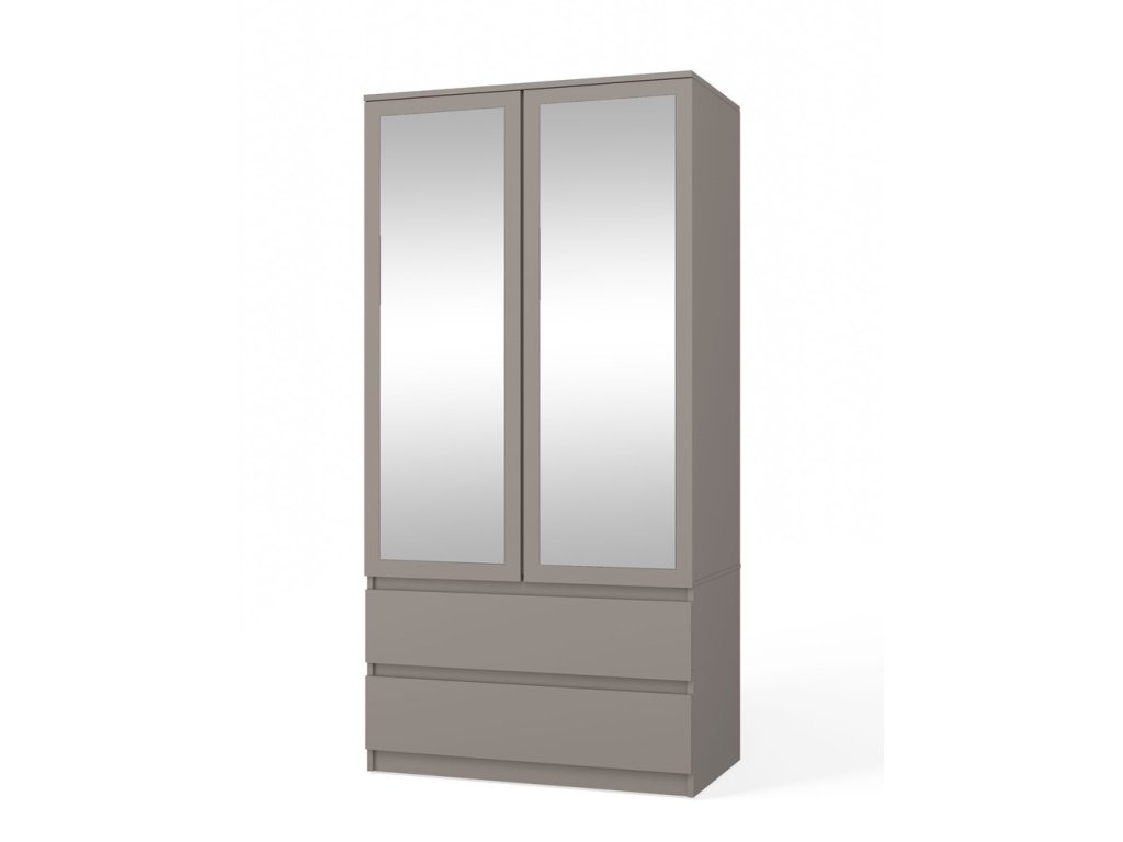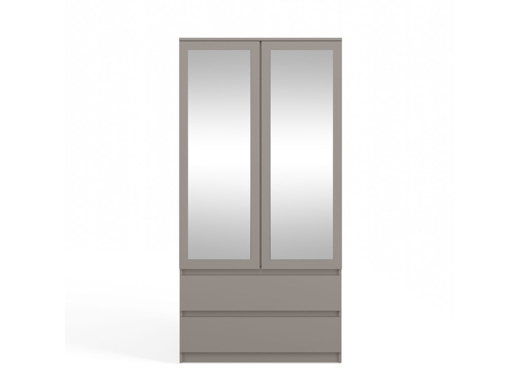Šatní skříň Malvína 2S-90 šedá - jíl/zrcadlo