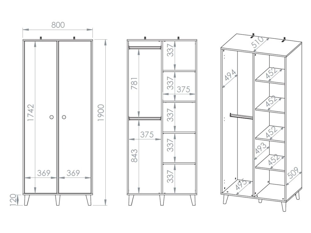 šíře 80 cm, výška 190 cm, hloubka 51 cm