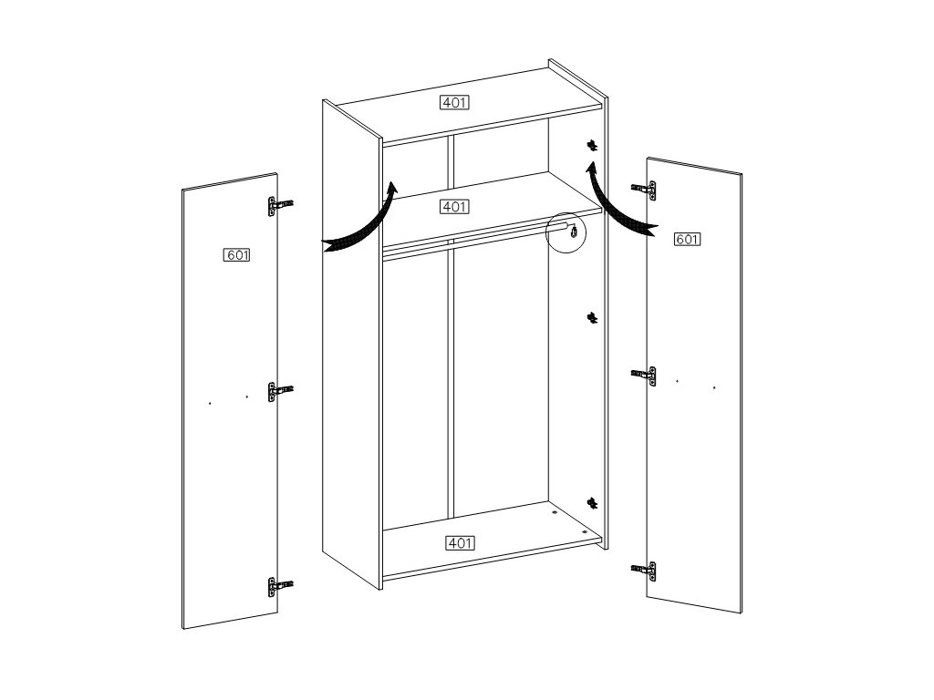 v horní části jedna police, pod ní šatní tyč