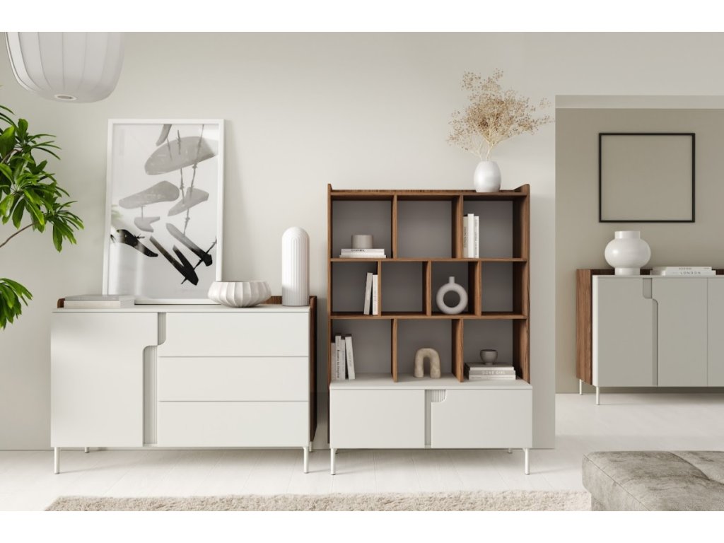 Moderní, elegantní a nadčasový sektor Positano. Předností nábytku jsou trendy vysoké nožky a zajímavě řešená drážkovaná vsadka na přední části. Tato kolekce rozjasní Váš interiér a Vy se tak budete cítit velmi příjemně a při odpočinku nebo relaxaci. Krásně se kombinuje s ostatními bytovými doplňky a díky různým dílům, které se dají kombinovat, vytvoříte útulný a bezpečný domov.