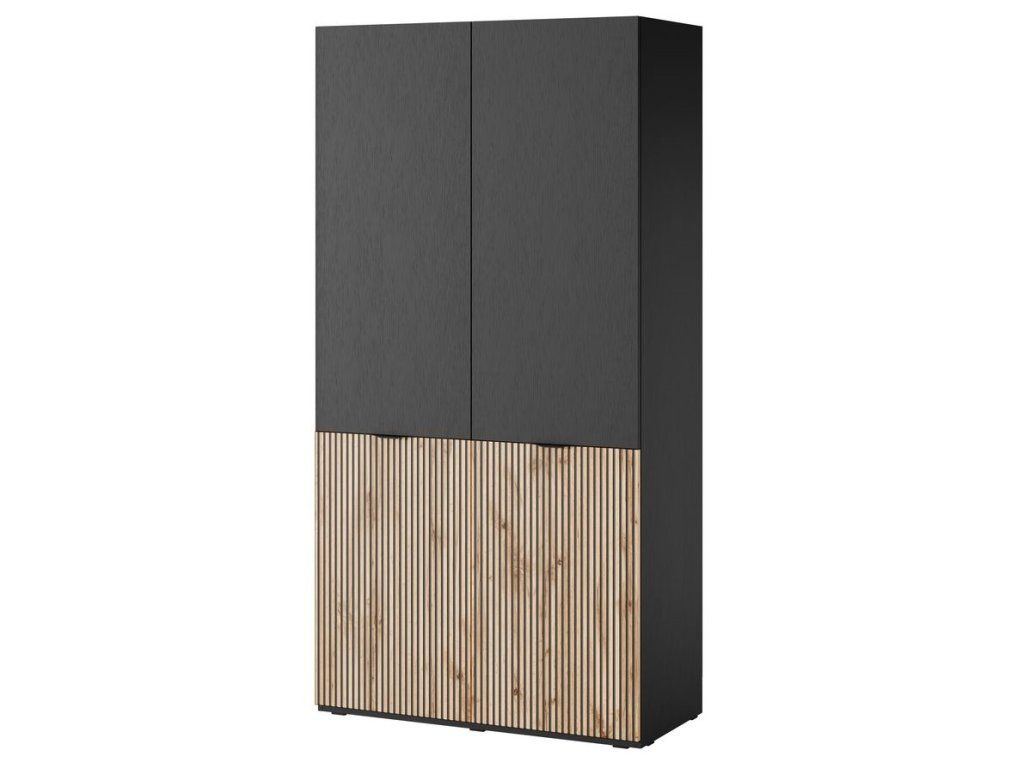 SENTO: Kombinace hladké horní části a spodní části v dekoru světlého dřeva s vertikálním drážkováním.
