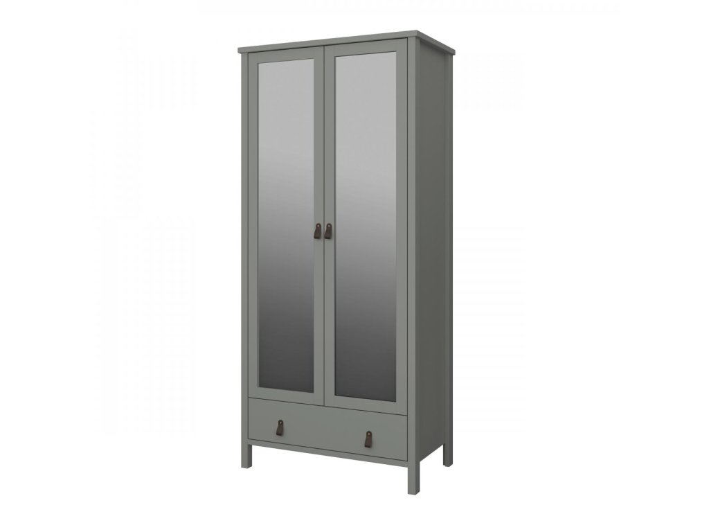 Šatní skříň se zrcadlem Tuan 2D1S šedá/kožené úchytky