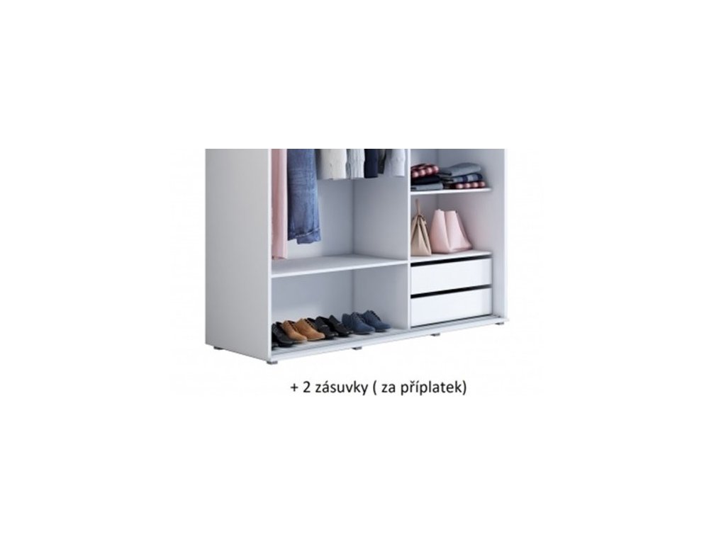 Šatní skříň SLIM lze volitelně vybavit dalšími zásuvkami, což dále zvyšuje její funkčnost. Volitelné LED osvětlení poskytuje vynikající osvětlení vnitřku šatní skříně odshora dolů, což ji činí ještě pohodlnější.