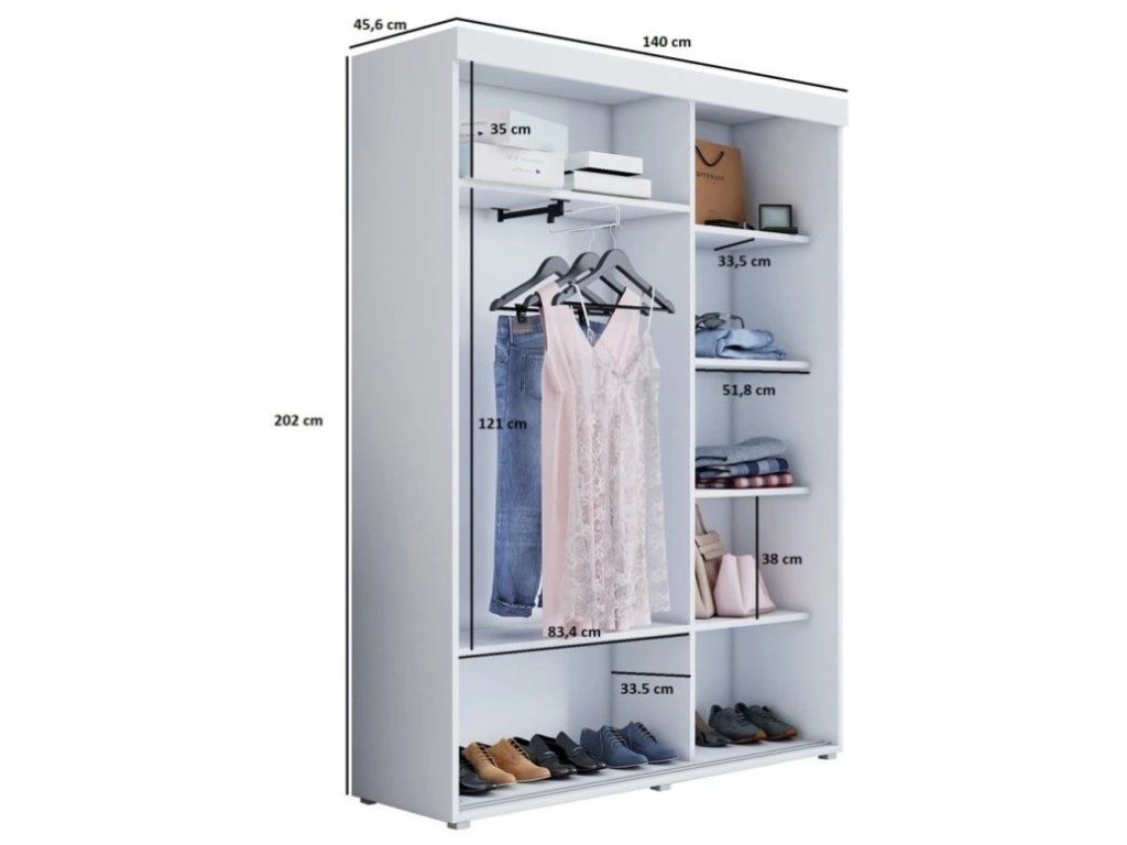 Šatní skříň Slim, šířka 140 cm, hloubka 45,6 cm