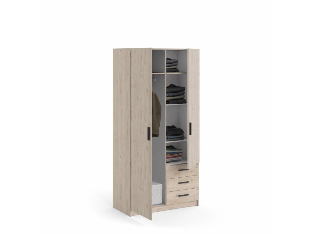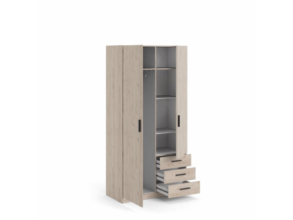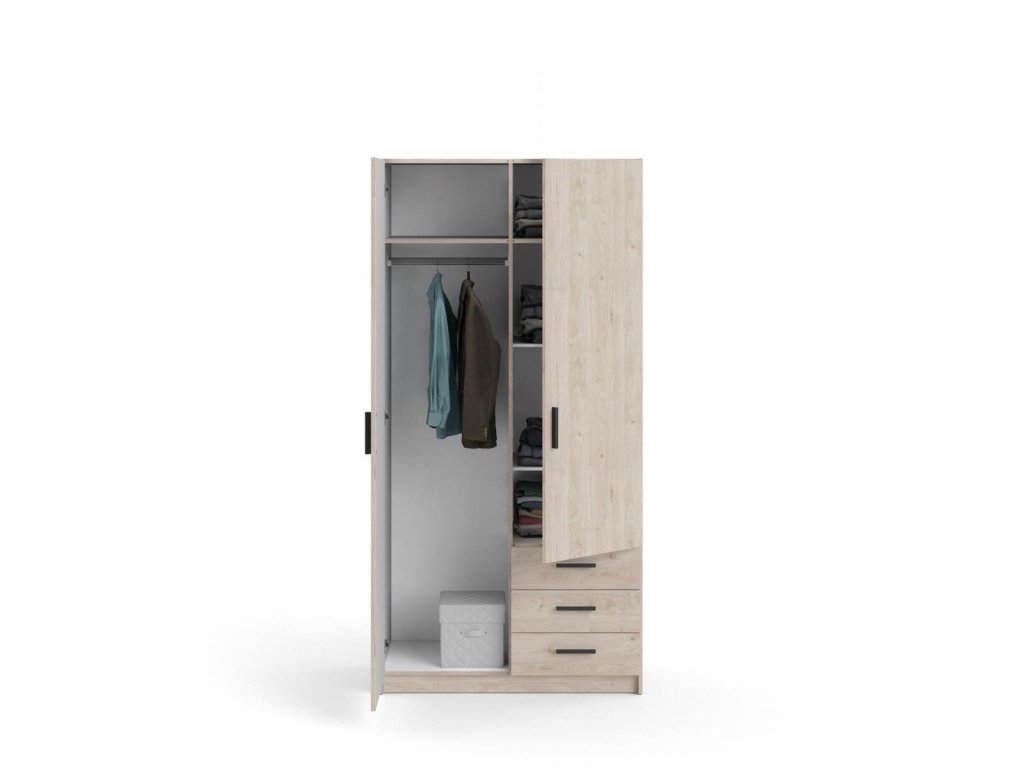 Šatní skříň Spike je vyrobená z lamina, má kvalitní zpracování, je vyráběná v souladu s ohledy na životní prostředí a navíc je praktická a funkční. Nabízí dostatek úložného prostoru a univerzální využití. Výborně se hodí např. do ložnice, do dětského i studentského pokoje, ale i do pracovny či předsíně. Skříň je vyrobená v jednoduchém a nadčasovém skandinávském stylu. Má rovné a čisté linie, které vytvoří útulný, pohodový a příjemný interiér. Skříň je také vybavena praktickými zásuvkami, které můžete využít např.na spodní prádlo. Je dodávaná v demontu. Součástí balení je montážní návod včetně všech spojovacích prvků. Vyobrazené doplňky a dekorace nejsou v ceně.