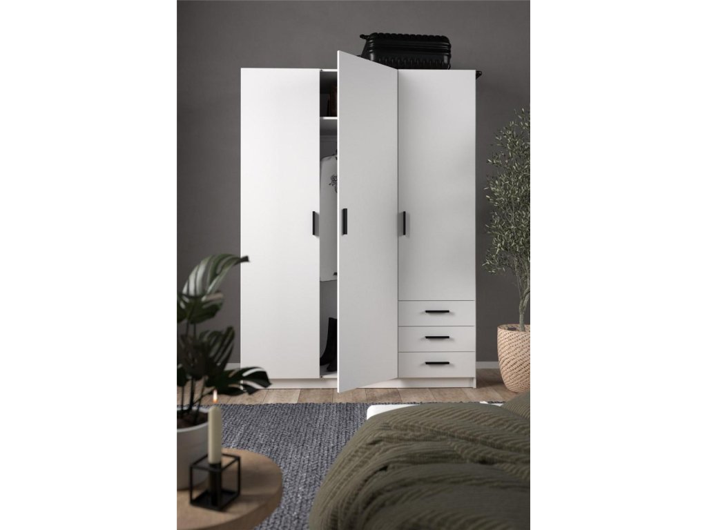 Šatní skříň Spike je vyrobená z lamina, má kvalitní zpracování, je vyráběná v souladu s ohledy na životní prostředí a navíc je praktická a funkční. Nabízí dostatek úložného prostoru a univerzální využití. Výborně se hodí např. do ložnice, do dětského i studentského pokoje, ale i do pracovny či předsíně. Skříň je vyrobená v jednoduchém a nadčasovém skandinávském stylu. Má rovné a čisté linie, které vytvoří útulný, pohodový a příjemný interiér. Skříň je také vybavena praktickými zásuvkami, které můžete využít např.na spodní prádlo. Je dodávaná v demontu. Součástí balení je montážní návod včetně všech spojovacích prvků. Vyobrazené doplňky a dekorace nejsou v ceně.
