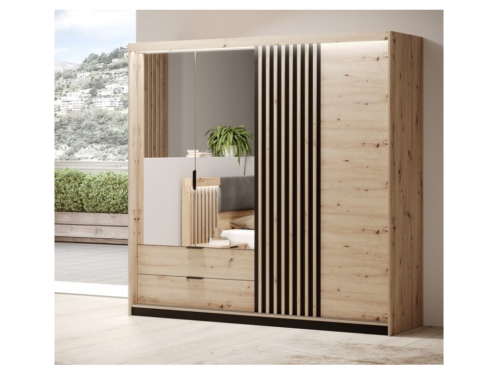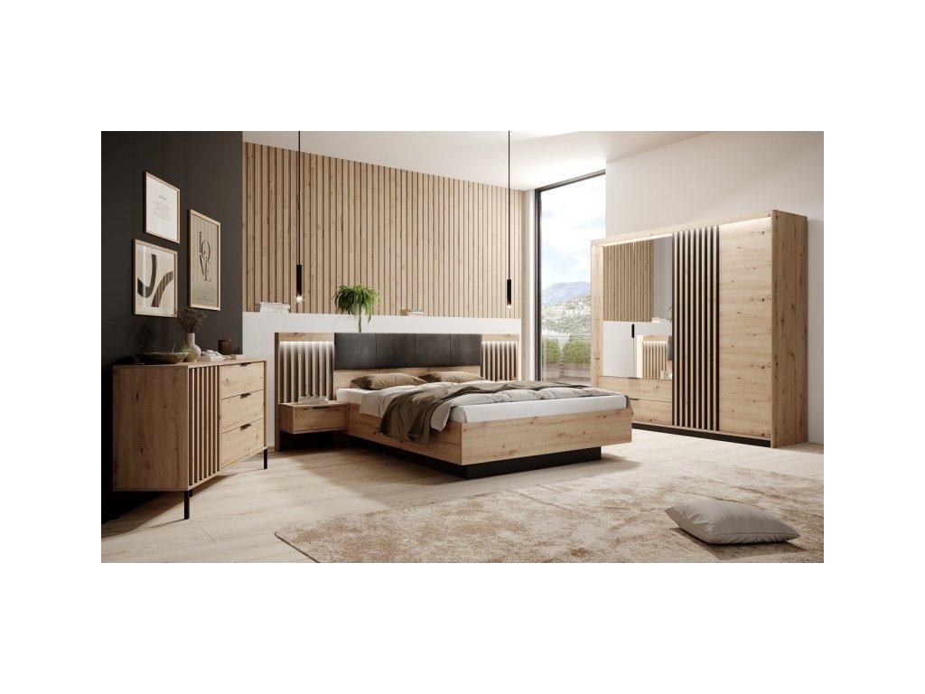 Kolekce Tally je pro všechny ty, kteří oceňují moderní trendy. Předností jsou elegantní lamely, které dodají nábytku luxusní vzhled. Toto jedinečné provedení nábytku je funkční a hlavně praktické. Nábytek se velmi dobře sladí s ostatními bytovými doplňky. V této ložnici se Vám bude krásně odpočívat a zároveň Vám zajistí příjemný, kvalitní a vydatný spánek.