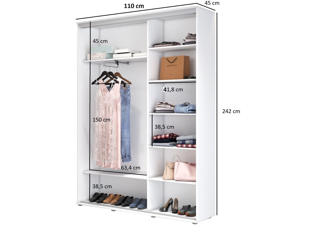 Šatní skříň Zuza 1 Alu - šířka 110 cm, hloubka 45 cm, výška 242 cm