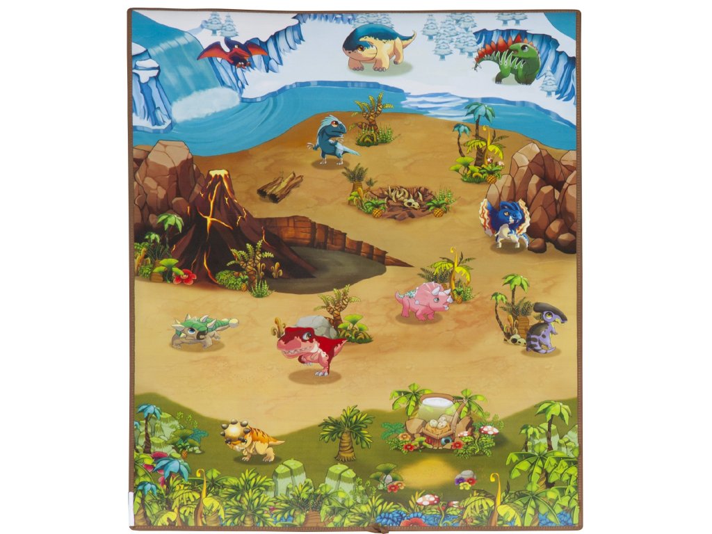 Krásný barevný koberec o rozměru 120 x 90 cm. Motivem tohoto koberečku jsou dinosauři a jejich prostředí. Každý z dinosaurů, při použití mobilního telefonu, tabletu a stažené aplikace ožívá.