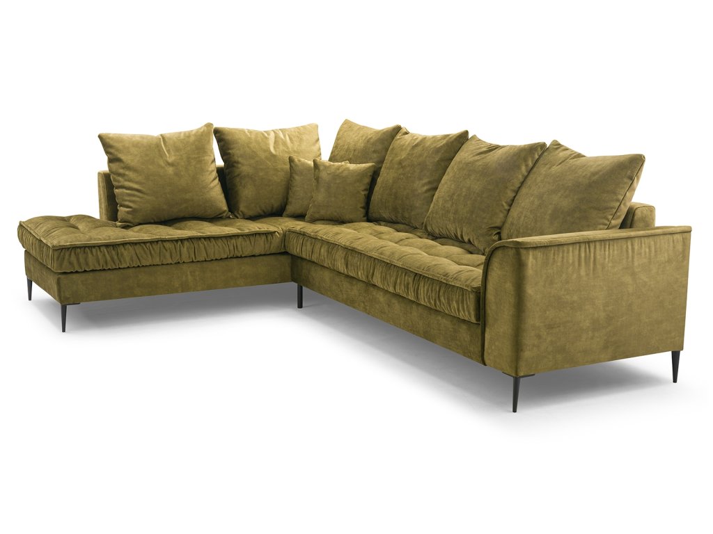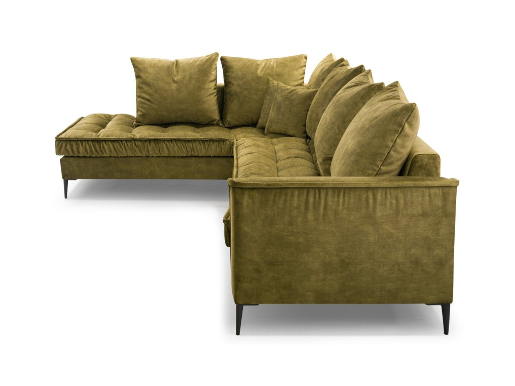 Polštáře jsou velmi pohodlnou součástí sedacích souprav. Jejich velké množství symbolizuje dokonalý relax. Sedací souprava Lidie je tedy pro ty, kteří si rádi užijí relax nejen po náročném dni, skvělou volbou. Její vzhled zaujme každou návštěvu. Prošívání sedáku a kovové nožky sedací soupravě přidává na eleganci. Všechny polštáře jsou volně ložené a můžete je přizpůsobit svému pohodlí. Výplň sedáku tvoří pružiny typu faliste v kombinaci s pěnou T30 a HR 35/45. Sedací souprava je celočalouněná, takže ji můžete umístit do prostoru. Sedací souprava není rozkládací, ale po sejmutí polštářů, vznikne dostatečně velký prostor k občasnému přespání. Cena je uvedena za sedací soupravu včetně polštářů. Vyobrazené dekorace nejsou v ceně. Sedací soupravu nabízíme v levém, nebo pravém provedení.