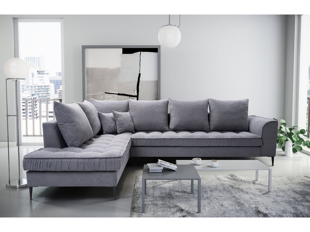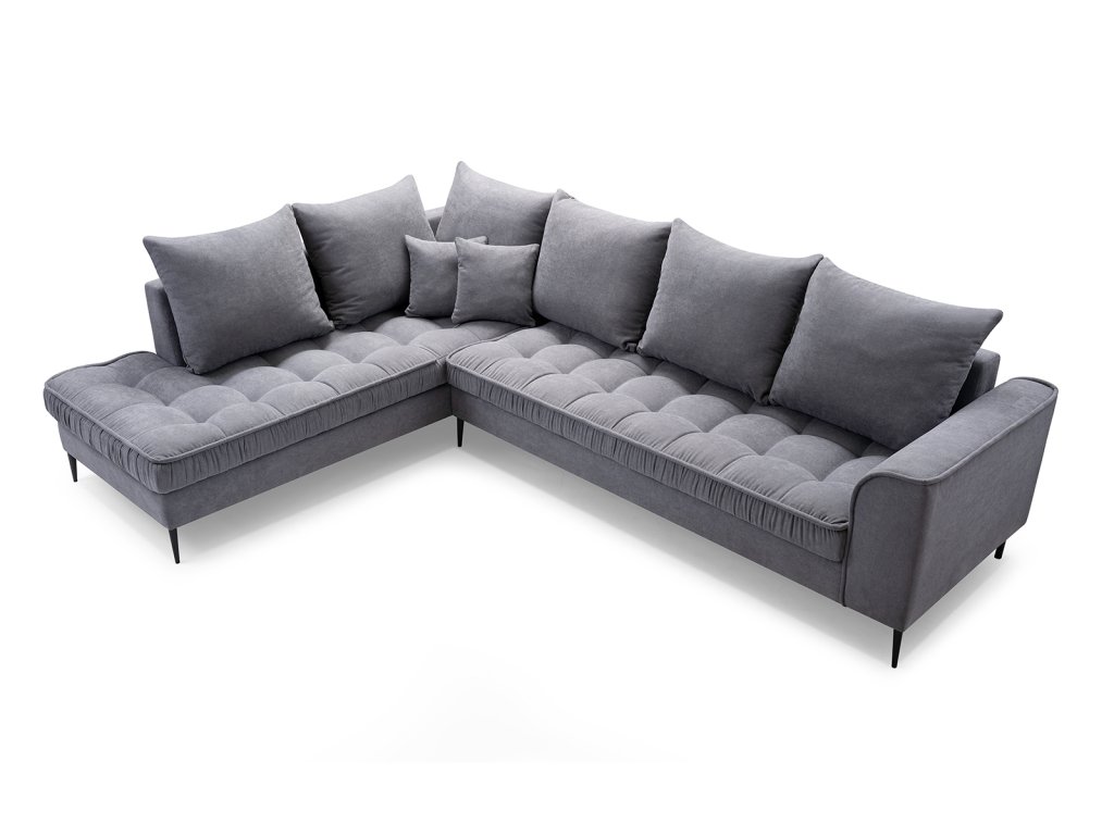Polštáře jsou velmi pohodlnou součástí sedacích souprav. Jejich velké množství symbolizuje dokonalý relax. Sedací souprava Lidie je tedy pro ty, kteří si rádi užijí relax nejen po náročném dni, skvělou volbou. Její vzhled zaujme každou návštěvu. Prošívání sedáku a kovové nožky sedací soupravě přidává na eleganci. Všechny polštáře jsou volně ložené a můžete je přizpůsobit svému pohodlí. Výplň sedáku tvoří pružiny typu faliste v kombinaci s pěnou T30 a HR 35/45. Sedací souprava je celočalouněná, takže ji můžete umístit do prostoru. Sedací souprava není rozkládací, ale po sejmutí polštářů, vznikne dostatečně velký prostor k občasnému přespání. Cena je uvedena za sedací soupravu včetně polštářů. Vyobrazené dekorace nejsou v ceně. Sedací soupravu nabízíme v levém, nebo pravém provedení.