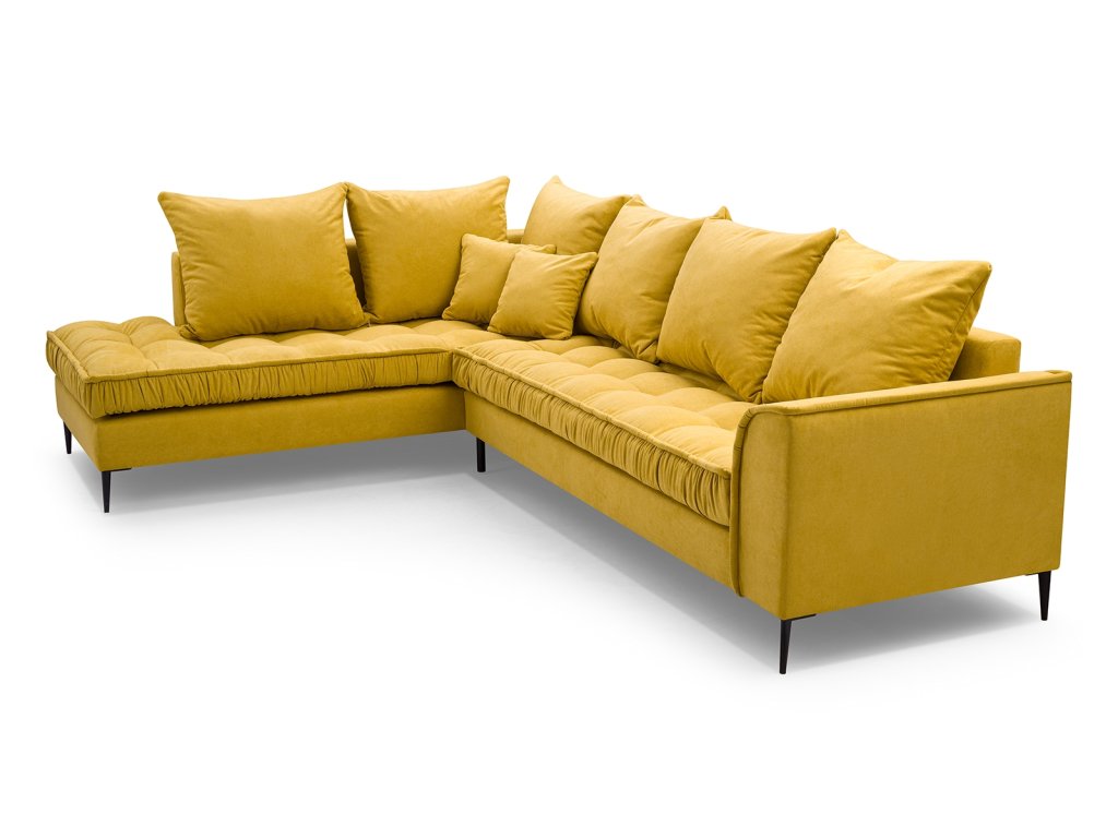 Polštáře jsou velmi pohodlnou součástí sedacích souprav. Jejich velké množství symbolizuje dokonalý relax. Sedací souprava Lidie je tedy pro ty, kteří si rádi užijí relax nejen po náročném dni, skvělou volbou. Její vzhled zaujme každou návštěvu. Prošívání sedáku a kovové nožky sedací soupravě přidává na eleganci. Všechny polštáře jsou volně ložené a můžete je přizpůsobit svému pohodlí. Výplň sedáku tvoří pružiny typu faliste v kombinaci s pěnou T30 a HR 35/45. Sedací souprava je celočalouněná, takže ji můžete umístit do prostoru. Sedací souprava není rozkládací, ale po sejmutí polštářů, vznikne dostatečně velký prostor k občasnému přespání. Cena je uvedena za sedací soupravu včetně polštářů. Vyobrazené dekorace nejsou v ceně. Sedací soupravu nabízíme v levém, nebo pravém provedení.