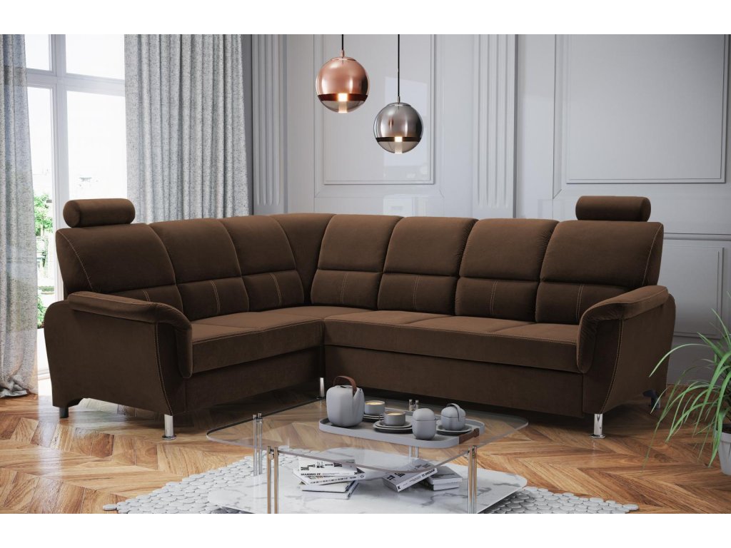 Sedací souprava L Nadia Velva 4 - hnědá