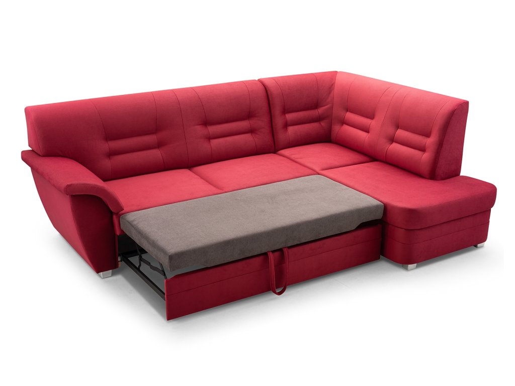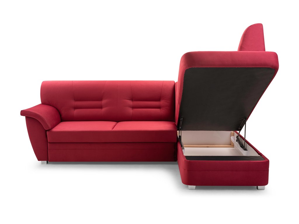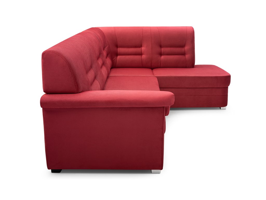 Moderní, rohová sedací souprava Dornia je rozkládací. Jednoduchým rozkladem vzniká lůžko vhodné k příležitostnému spaní. Má uložný prostor, který lze využít například na lůžkoviny. Sedací souprava je pružinová v kombinaci s kvalitní PUR pěnou. Je celočalouněná a je možno ji umístit také do prostoru. Na úvodním obrázku je sedací souprava vyobrazena v pravém provedení. Správná barva je zobrazena na první fotografii. Ostaní fotografie jsou pouze ilustrační. Vyobrazené doplňky a dekorace nejsou v ceně.