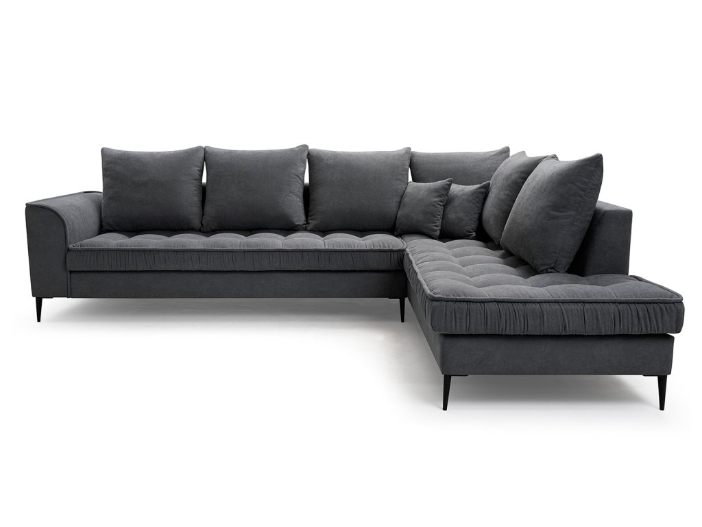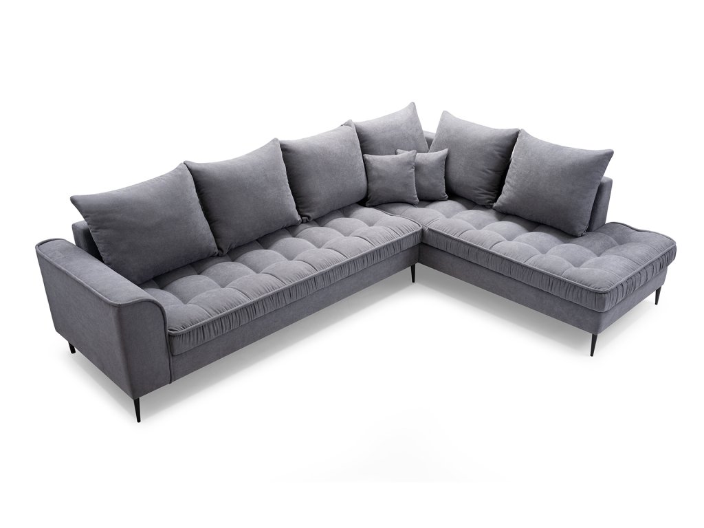 Polštáře jsou velmi pohodlnou součástí sedacích souprav. Jejich velké množství symbolizuje dokonalý relax. Sedací souprava Lidie je tedy pro ty, kteří si rádi užijí relax nejen po náročném dni, skvělou volbou. Její vzhled zaujme každou návštěvu. Prošívání sedáku a kovové nožky sedací soupravě přidává na eleganci. Všechny polštáře jsou volně ložené a můžete je přizpůsobit svému pohodlí. Výplň sedáku tvoří pružiny typu faliste v kombinaci s pěnou T30 a HR 35/45. Sedací souprava je celočalouněná, takže ji můžete umístit do prostoru. Sedací souprava není rozkládací, ale po sejmutí polštářů, vznikne dostatečně velký prostor k občasnému přespání. Cena je uvedena za sedací soupravu včetně polštářů. Vyobrazené dekorace nejsou v ceně. Sedací soupravu nabízíme v levém, nebo pravém provedení.