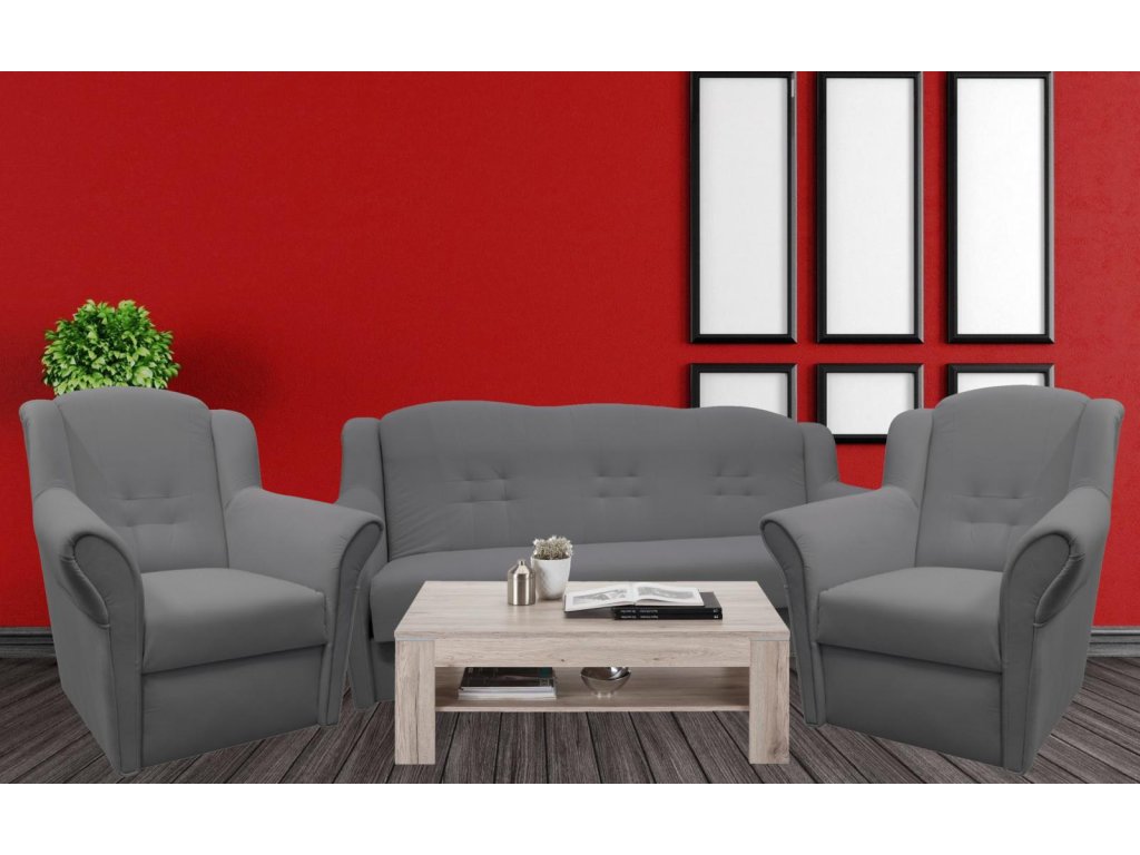 Agata je stále velmi oblíbeným klasickým modelem sedací soupravy v provedení 3F+1+1. Je velmi pohodlná a zároveň praktická. Sedací souprava je rozkládací a samozřejmostí je i úložný prostor. Jednoduchým rozkladem pomocí systému "klik klak" vznikne lůžko k příležitostnému přespání Vaší návštěvy. Sedací souprava je potažena kvalitní látkou Matt Velvet a nabízíme ji v několika barvách, ze kterých si určitě vyberete tu nejvhodnější pro Váš obývací pokoj. Textilie Mat Velvet je vyrobená ze 100% polyesteru. Mimořádně jemná struktura, hebkost, nadýchanost a trvanlivost charakterizují tuto látku. Tkanina Mat Velvet spojuje nadčasový design a funkčnost. Navíc vyniká speciální povrchovou úpravou „Water Repellent“. Výplň sedáků tvoří pružiny v kombinaci s kvalitní PUR pěnou. Tato kombinace zajistí velmi pohodlné sezení. Cena sedací soupravy je uvedena za rozkládací trojsed a dvě křesla. Tuto sedací soupravu lze objednat v jakékoliv látce ze vzorníku, který je vyobrazen v doplňkových fotografiích. V případě zájmu nás kontaktujte.
