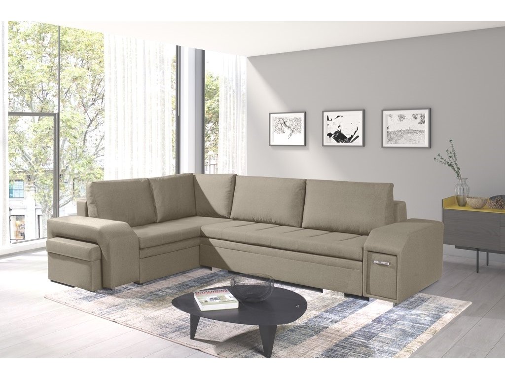 Sedací souprava Alana v sobě spojuje 2 důležité prvky, které nesmí chybět žádné sedací soupravě. Jsou to pohodlí a praktičnost. Praktickou stránkou této sedací soupravy je možnost rozložení pro příležitostné přespání návštěvy a nepostradatelné úložné prostory. Úložný prostor s univerzálním využitím najdete v područi, dále v taburetu, který je možno zasunout do druhé područe a samořejmostí je i úložný prostor v sedací soupravě. Jsou dva a využijete je např. na lůžkoviny. Sedací souprava je celočalouněná, takže je vhodná i k umístění do prostoru. Výplň sedáků tvoří kombinace pružin s kvalitní PUR pěnou. Tato kombinace spolu s velkými opěrnými polštáři, zajišťuje pohodlí. Sedací soupravu nabízíme v levém i pravém provedení v několika trendy barvách. Vyobrazené doplňky a dekorace nejsou v ceně. Vzorek látky, ve které bude sedací souprava dodána, je vyobrazen v doplňkových fotografiích.