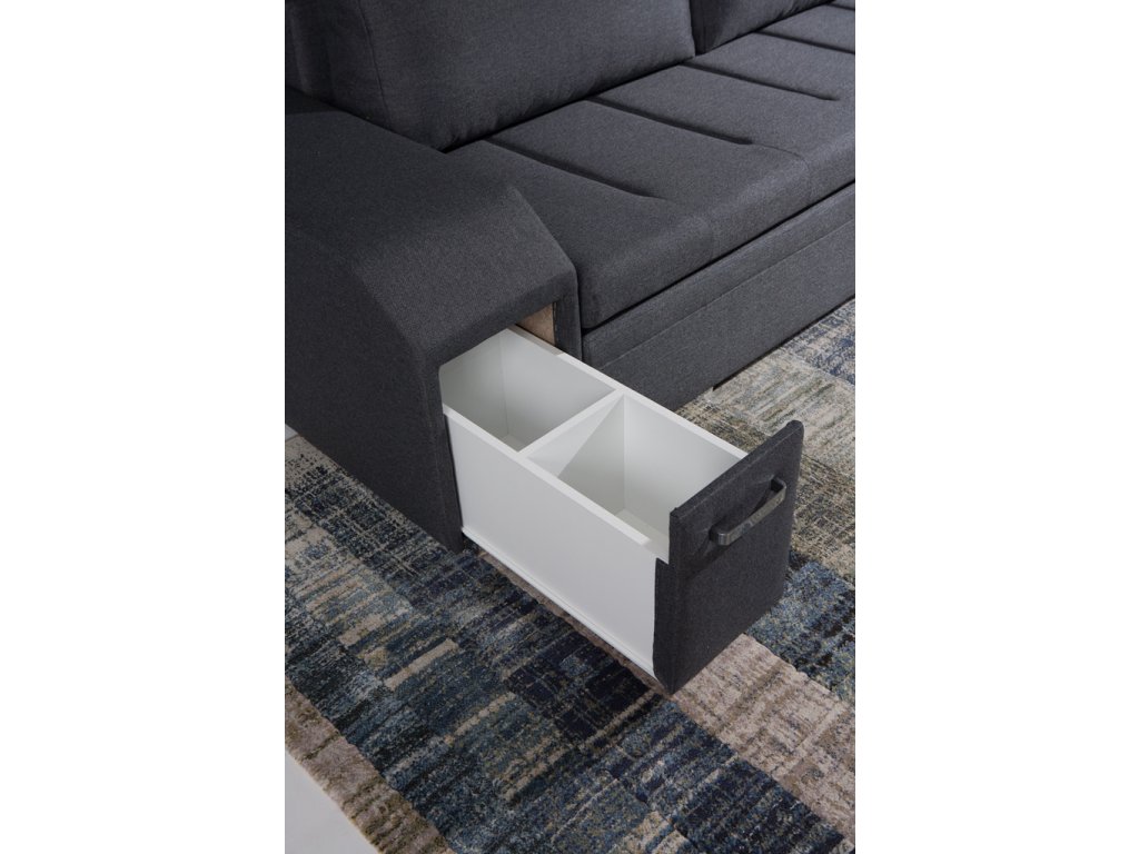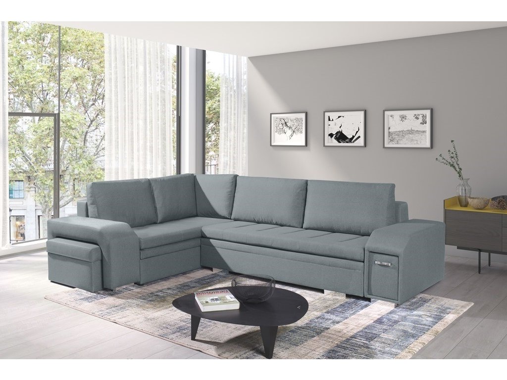 Sedací souprava Alana v sobě spojuje 2 důležité prvky, které nesmí chybět žádné sedací soupravě. Jsou to pohodlí a praktičnost. Praktickou stránkou této sedací soupravy je možnost rozložení pro příležitostné přespání návštěvy a nepostradatelné úložné prostory. Úložný prostor s univerzálním využitím najdete v područi, dále v taburetu, který je možno zasunout do druhé područe a samořejmostí je i úložný prostor v sedací soupravě. Jsou dva a využijete je např. na lůžkoviny. Sedací souprava je celočalouněná, takže je vhodná i k umístění do prostoru. Výplň sedáků tvoří kombinace pružin s kvalitní PUR pěnou. Tato kombinace spolu s velkými opěrnými polštáři, zajišťuje pohodlí. Sedací soupravu nabízíme v levém i pravém provedení v několika trendy barvách. Vyobrazené doplňky a dekorace nejsou v ceně. Vzorek látky, ve které bude sedací souprava dodána, je vyobrazen v doplňkových fotografiích.