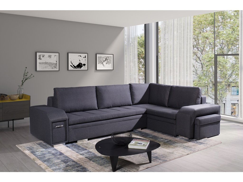 Sedací souprava Alana v sobě spojuje 2 důležité prvky, které nesmí chybět žádné sedací soupravě. Jsou to pohodlí a praktičnost. Praktickou stránkou této sedací soupravy je možnost rozložení pro příležitostné přespání návštěvy a nepostradatelné úložné prostory. Úložný prostor s univerzálním využitím najdete v područi, dále v taburetu, který je možno zasunout do druhé područe a samořejmostí je i úložný prostor v sedací soupravě. Jsou dva a využijete je např. na lůžkoviny. Sedací souprava je celočalouněná, takže je vhodná i k umístění do prostoru. Výplň sedáků tvoří kombinace pružin s kvalitní PUR pěnou. Tato kombinace spolu s velkými opěrnými polštáři, zajišťuje pohodlí. Sedací soupravu nabízíme v levém i pravém provedení v několika trendy barvách. Vyobrazené doplňky a dekorace nejsou v ceně. Vzorek látky, ve které bude sedací souprava dodána, je vyobrazen v doplňkových fotografiích.