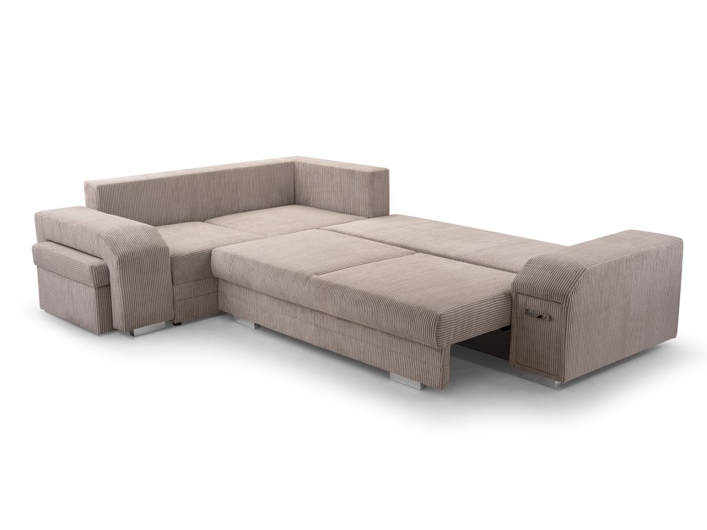 Sedací souprava Alvin v moderním designu v sobě spojuje 2 důležité prvky, které nesmí chybět žádné sedací soupravě. Jsou to pohodlí a praktičnost. Praktickou stránkou této sedací soupravy je možnost rozložení pro příležitostné přespání návštěvy a nepostradatelné úložné prostory. Úložný prostor s univerzálním využitím najdete v područi, dále v taburetu, který je možno zasunout do druhé područe a samořejmostí je i úložný prostor v sedací soupravě. Jsou dva a využijete je např. na lůžkoviny. Výplň sedáků tvoří kombinace pružin s kvalitní PUR pěnou. Tato kombinace spolu s velkými opěrnými polštáři, zajišťuje pohodlí. Sedací souprava je celočalouněná a můžete jí umístit také do prostoru. Sedací soupravu nabízíme v levém i pravém provedení a v několika oblíbených barvách i látkách. Správná barva je zobrazena na úvodní fotografii. Fotografie sedací soupravy v rozkladu, jsou pouze ilustrační.