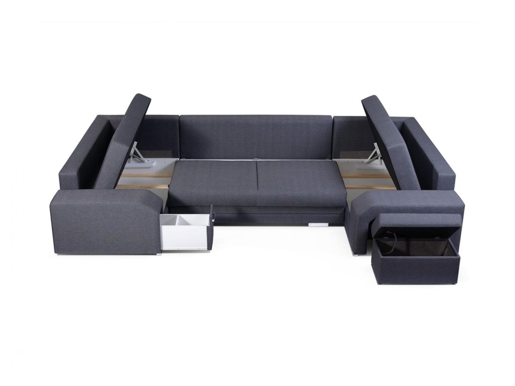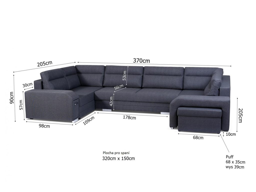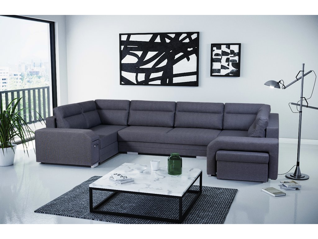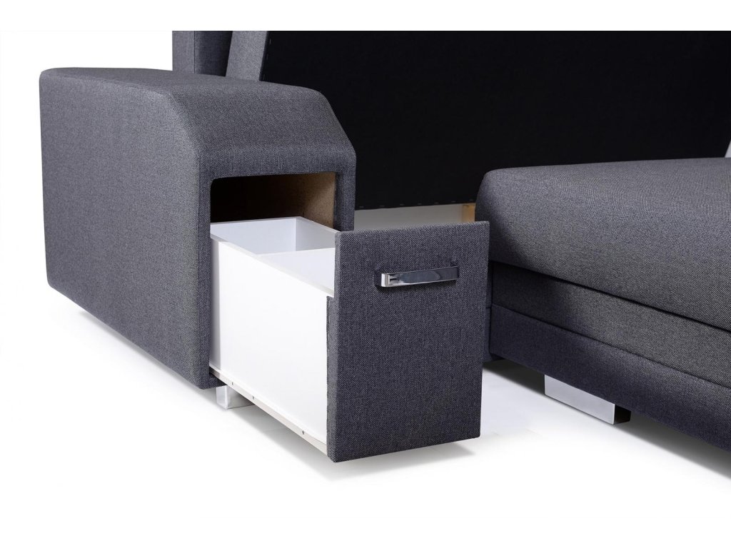 Moderní prostorná sedačka, která svým rozměrem splní všechna vaše očekávání. Na této designové sedačce můžete lenošit u televize nebo pozvat přátele k příjemnému posezení. Sedací souprava je rozkládací, jednoduchým rozkladem pomocí automatu vznikne lůžko vhodné k příležitostnému spaní nejen pro vaši návštěvu. Sedačka má tři praktické úložné prostory plus otevírací taburet, který je zasunut do boční části. Ve druhé boční části je zasunovací bar, kde schováte vše, co potřebujete ke správnému lenošení. Sedačka je vyrobena z pružin v kombinaci s kvalitní PUR pěnou. Potažena je čalounickou látkou Inari v šedém provedení. Sedací souprava má očalouněná také záda, takže ji můžete umístit i do prostoru. Sedací souprava bude dodána v provedení jako na úvodním obrázku, ostatní obrázky jsou ilustrační. Zboží je dodáváno na paletě v demontu.