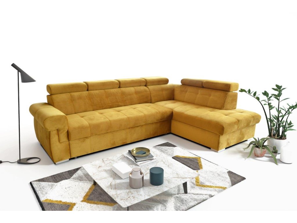 Pohodlná sedací souprava patří k nejdůležitějšímu vybavení každého obývacího pokoje. Je centrem k odpočinku po namáhavém dni, nebo k posezení s rodinou či přáteli a proto musí být pohodlná a praktická. Nabízíme Vám sedací soupravu Amadeus, která je ideálním spojením pohodlí, praktičnosti a také moderního designu. Tato sedací souprava přímo vybízí k relaxaci např. u sledování televize. Pohodlí při sezení zajišťuje výplň sedáku, kterou tvoří vlnité pružiny v kombinaci s kvalitní HR pěnou a také polohovací opěrky, které si můžete podle potřeby přizpůsobit. Praktickou stránkou je možnost rozkládání. Po rozložení vznikne dostatečně velké lůžko k občasnému přespání návštěvy. Samozřejmostí je i objemný úložný prostor, který můžete využít třeba na lůžkoviny. Sedací soupravu nabízíme v levém i pravém provedení. Vyobrazené doplňky a dekorace nejsou v ceně sedací soupravy.