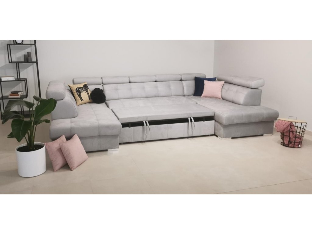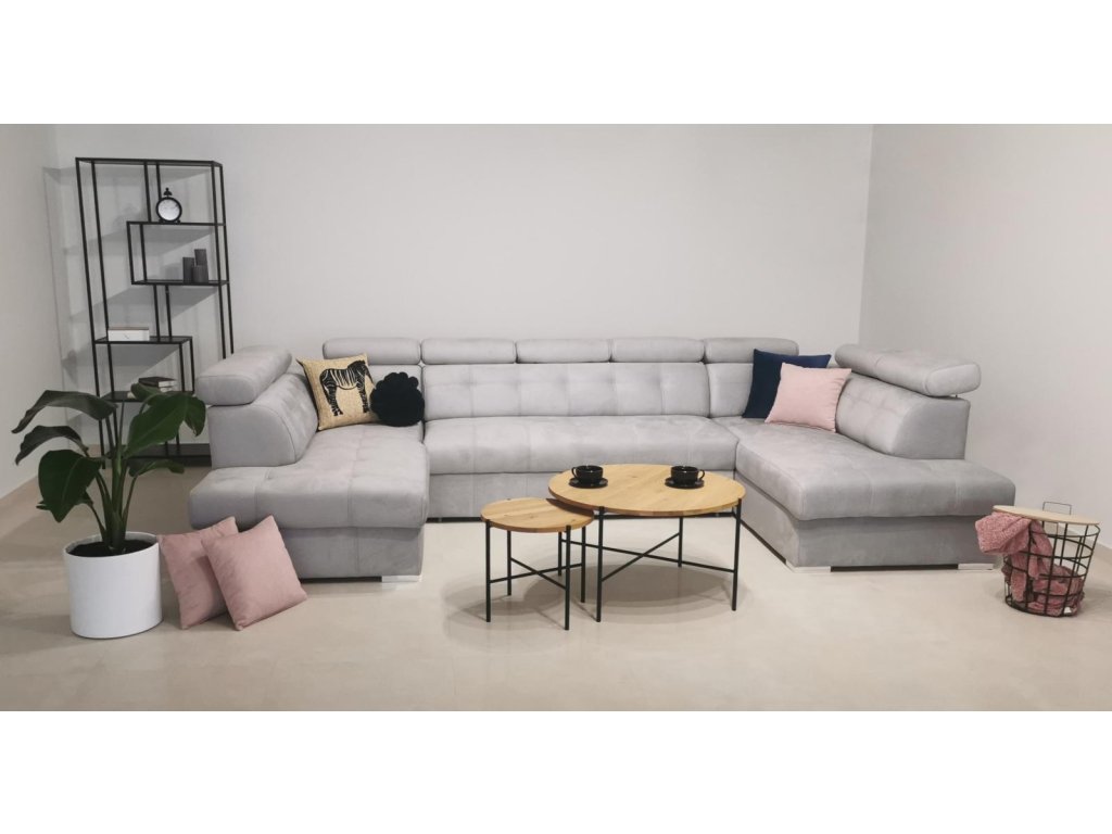 Pohodlná sedací souprava patří k nejdůležitějšímu vybavení každého obývacího pokoje. Je centrem k odpočinku po namáhavém dni, nebo k posezení s rodinou či přáteli a proto musí být pohodlná a praktická. Nabízíme Vám prostornou sedací soupravu Amadeus ve tvaru U, která je ideálním spojením pohodlí, praktičnosti a také moderního designu. Tato sedací souprava přímo vybízí k relaxaci např. u sledování televize. Pohodlí při sezení zajišťuje výplň sedáku, kterou tvoří vlnité pružiny v kombinaci s kvalitní HR pěnou a také polohovací opěrky, které si můžete podle potřeby přizpůsobit. Praktickou stránkou je možnost rozkládání. Po rozložení vznikne dostatečně velké lůžko k občasnému přespání návštěvy. Samozřejmostí je i objemný úložný prostor, který můžete využít třeba na lůžkoviny. Vyobrazené doplňky a dekorace nejsou v ceně sedací soupravy.