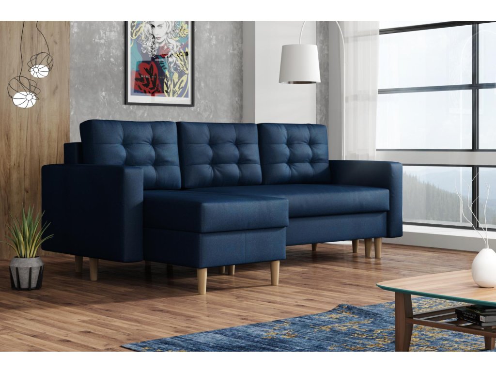 Sedací souprava Anabel je krásným designovým RETRO kouskem, který výborně zapadne do moderního i klasického interiéru. Retro design podtrhují dřevěné nohy a vtahy na opěrných polštářích. Její velkou předností je pohodlí, praktičnost a univerzální použití. Tzn. že si ji můžete podle potřeby sestavit jako levou nebo pravou, což je výhoda při zařizování obývacího pokoje. Nemusíte přemýšlet do jakého rohu postavíte sedací soupravu, jednoduše ji podle potřeby přizpůsobíte. Sedací souprava je rozkládací a může tak sloužit k občasnému přespání Vaší návštěvy. Samozřejmostí je i praktický úložný prostor, který je v obou částech sedačky a můžete ho využít např. na lůžkoviny. Sedací souprava je potažena látkou a nabízíme v několika oblíbených barvách. Výplň sedáků tvoří kombinace pružin s kvalitní PUR pěnou, což zajišťuje velmi pohodlné sezení. Sedací souprava je vhodná i do menších pokojů. Vyobrazené doplňky a dekorace nejsou v ceně.