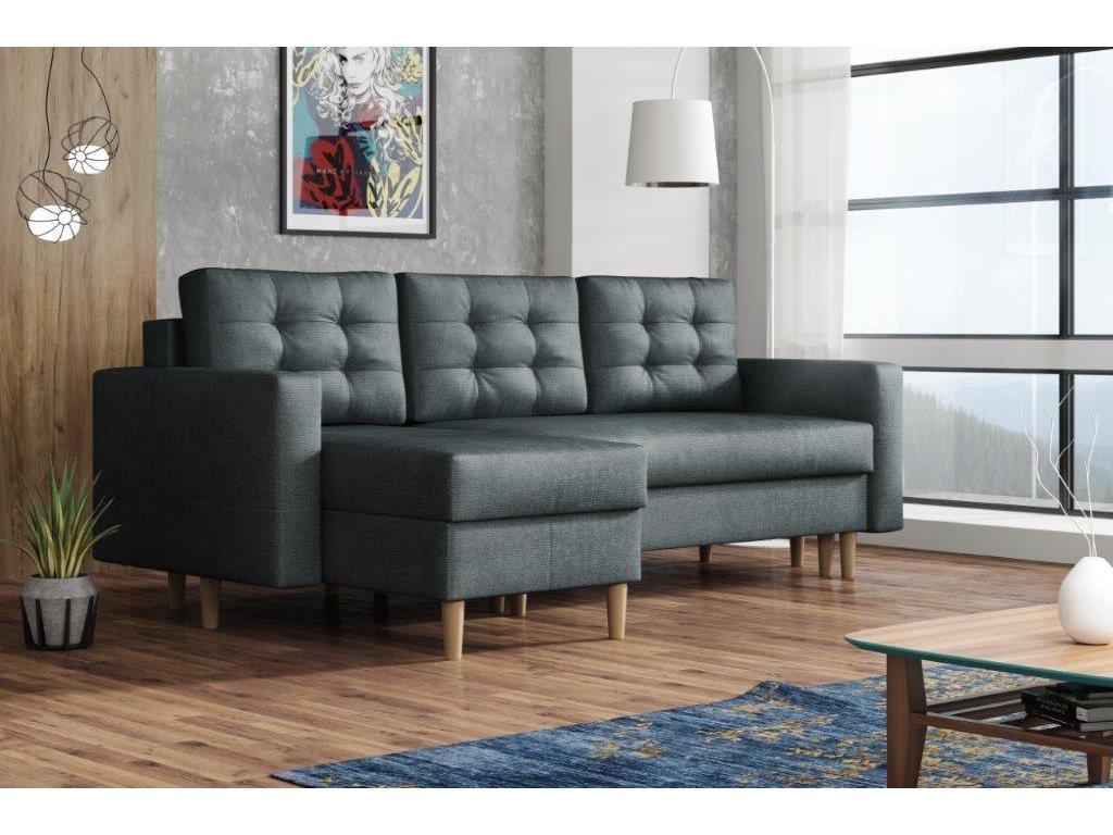 Sedací souprava Anabel je krásným designovým RETRO kouskem, který výborně zapadne do moderního i klasického interiéru. Retro design podtrhují dřevěné nohy a vtahy na opěrných polštářích. Její velkou předností je pohodlí, praktičnost a univerzální použití. Tzn. že si ji můžete podle potřeby sestavit jako levou nebo pravou, což je výhoda při zařizování obývacího pokoje. Nemusíte přemýšlet do jakého rohu postavíte sedací soupravu, jednoduše ji podle potřeby přizpůsobíte. Sedací souprava je rozkládací a může tak sloužit k občasnému přespání Vaší návštěvy. Samozřejmostí je i praktický úložný prostor, který je v obou částech sedačky a můžete ho využít např. na lůžkoviny. Sedací souprava je potažena látkou a nabízíme v několika oblíbených barvách. Výplň sedáků tvoří kombinace pružin s kvalitní PUR pěnou, což zajišťuje velmi pohodlné sezení. Sedací souprava je vhodná i do menších pokojů. Vyobrazené doplňky a dekorace nejsou v ceně.