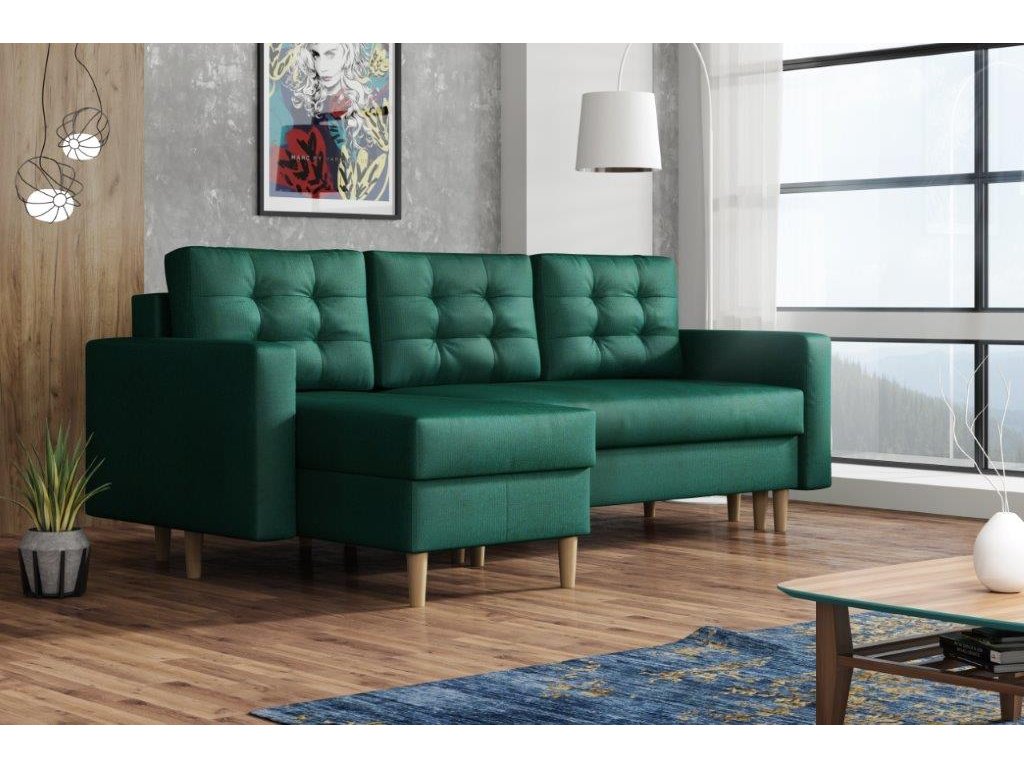 Sedací souprava Anabel je krásným designovým RETRO kouskem, který výborně zapadne do moderního i klasického interiéru. Retro design podtrhují dřevěné nohy a vtahy na opěrných polštářích. Její velkou předností je pohodlí, praktičnost a univerzální použití. Tzn. že si ji můžete podle potřeby sestavit jako levou nebo pravou, což je výhoda při zařizování obývacího pokoje. Nemusíte přemýšlet do jakého rohu postavíte sedací soupravu, jednoduše ji podle potřeby přizpůsobíte. Sedací souprava je rozkládací a může tak sloužit k občasnému přespání Vaší návštěvy. Samozřejmostí je i praktický úložný prostor, který je v obou částech sedačky a můžete ho využít např. na lůžkoviny. Sedací souprava je potažena látkou a nabízíme v několika oblíbených barvách. Výplň sedáků tvoří kombinace pružin s kvalitní PUR pěnou, což zajišťuje velmi pohodlné sezení. Sedací souprava je vhodná i do menších pokojů. Vyobrazené doplňky a dekorace nejsou v ceně.