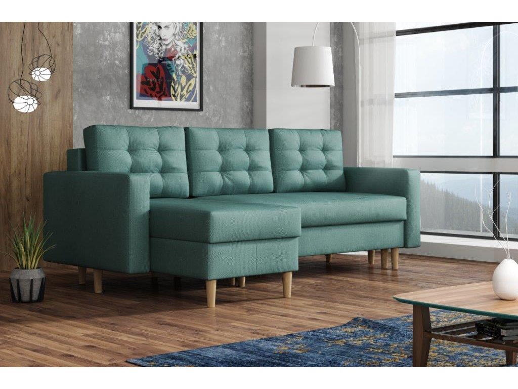 Sedací souprava Anabel je krásným designovým RETRO kouskem, který výborně zapadne do moderního i klasického interiéru. Retro design podtrhují dřevěné nohy a vtahy na opěrných polštářích. Její velkou předností je pohodlí, praktičnost a univerzální použití. Tzn. že si ji můžete podle potřeby sestavit jako levou nebo pravou, což je výhoda při zařizování obývacího pokoje. Nemusíte přemýšlet do jakého rohu postavíte sedací soupravu, jednoduše ji podle potřeby přizpůsobíte. Sedací souprava je rozkládací a může tak sloužit k občasnému přespání Vaší návštěvy. Samozřejmostí je i praktický úložný prostor, který je v obou částech sedačky a můžete ho využít např. na lůžkoviny. Sedací souprava je potažena látkou a nabízíme v několika oblíbených barvách. Výplň sedáků tvoří kombinace pružin s kvalitní PUR pěnou, což zajišťuje velmi pohodlné sezení. Sedací souprava je vhodná i do menších pokojů. Vyobrazené doplňky a dekorace nejsou v ceně.