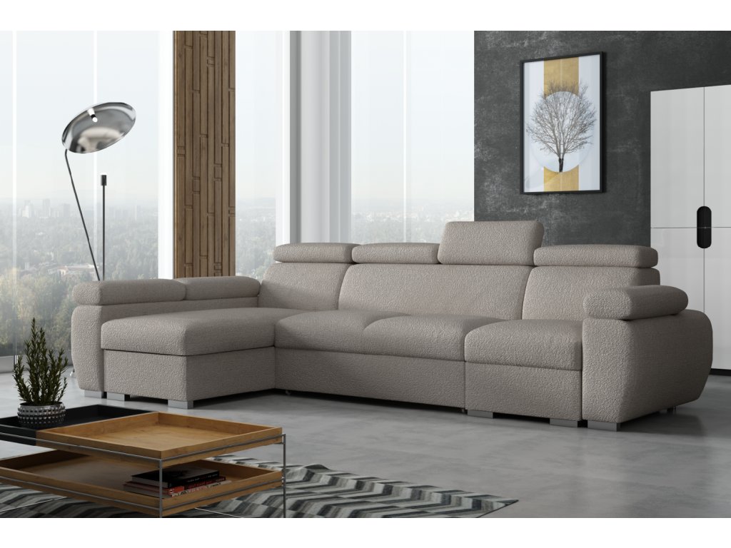Sedací souprava Bodie se stane příjemným centrem odpočinku, nebo setkání s rodinou a přáteli. Je velmi pohodlná, praktická a nabízí dostatek místa k sezení. Praktickou stránkou sedací soupravy je možnost rozložení k příležitostnému přespání a také nepostradatelný úložný prostor. Pohodlí při sezení zajišťuje výplň sedáků, kterou tvoří kombinace vlnitých pružin s kvalitní PUR pěnou. Při odpočinku, nebo sledování televize Vám zvýší pohodlí polohovací opěrky. Sedací souprava je potažena kvalitní látkou Anthology, která je originální a extrémně měkká, se specifickou bouclé texturou. Látka se snadno čistí a udržuje v perfektním stavu. Sedací soupravu nabízíme v levém i pravém provedení. Vyobrazené doplňky a dekorace nejsou v ceně. Fotografie sedací soupravy v rozkladu jsou pouze ilustrační. Správný barevný odstín je zobrazen na úvodní fotografii.
