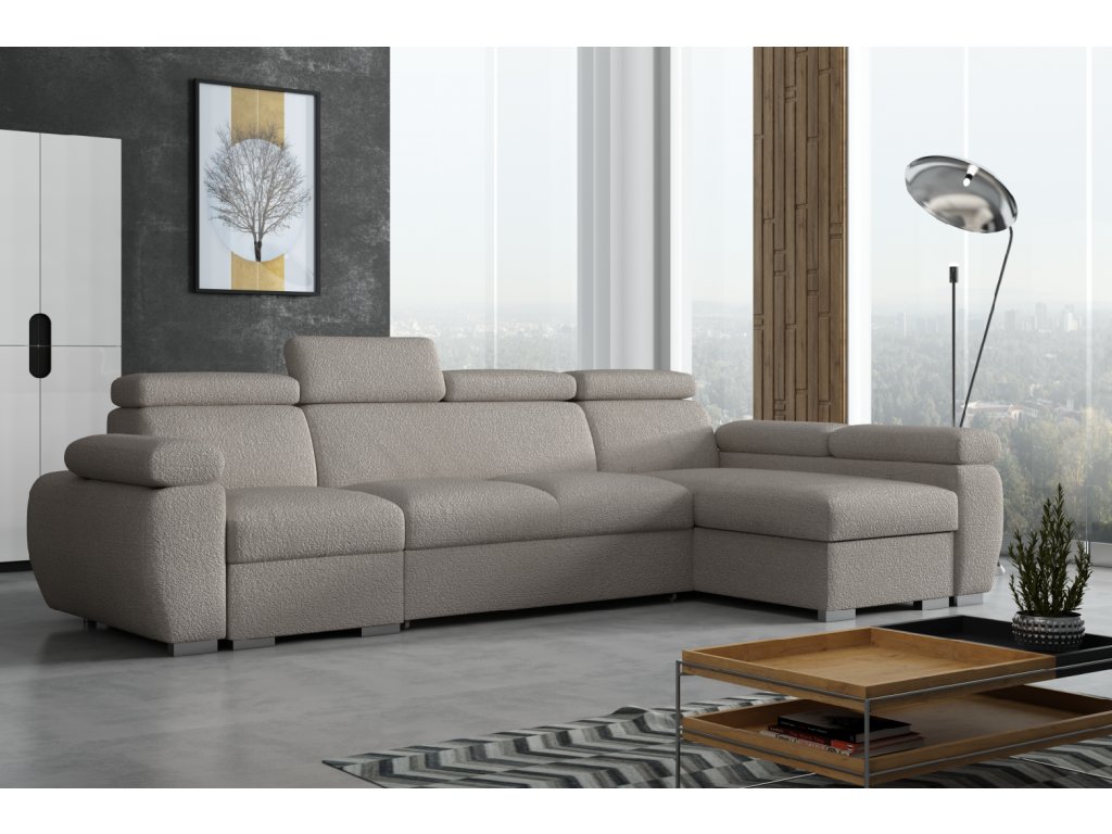 Sedací souprava Bodie se stane příjemným centrem odpočinku, nebo setkání s rodinou a přáteli. Je velmi pohodlná, praktická a nabízí dostatek místa k sezení. Praktickou stránkou sedací soupravy je možnost rozložení k příležitostnému přespání a také nepostradatelný úložný prostor. Pohodlí při sezení zajišťuje výplň sedáků, kterou tvoří kombinace vlnitých pružin s kvalitní PUR pěnou. Při odpočinku, nebo sledování televize Vám zvýší pohodlí polohovací opěrky. Sedací souprava je potažena kvalitní látkou Anthology, která je originální a extrémně měkká, se specifickou bouclé texturou. Látka se snadno čistí a udržuje v perfektním stavu. Sedací soupravu nabízíme v levém i pravém provedení. Vyobrazené doplňky a dekorace nejsou v ceně. Fotografie sedací soupravy v rozkladu jsou pouze ilustrační. Správný barevný odstín je zobrazen na úvodní fotografii.