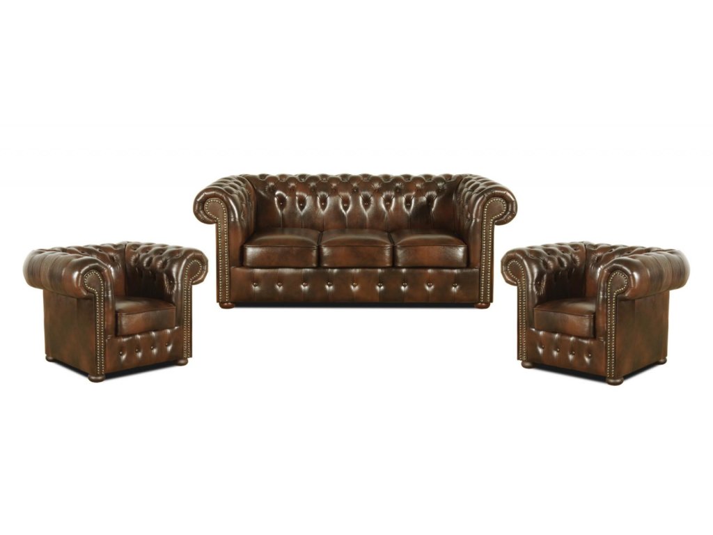 Sedací souprava Chesterfield Classic 3+1+1 kůže hnědá