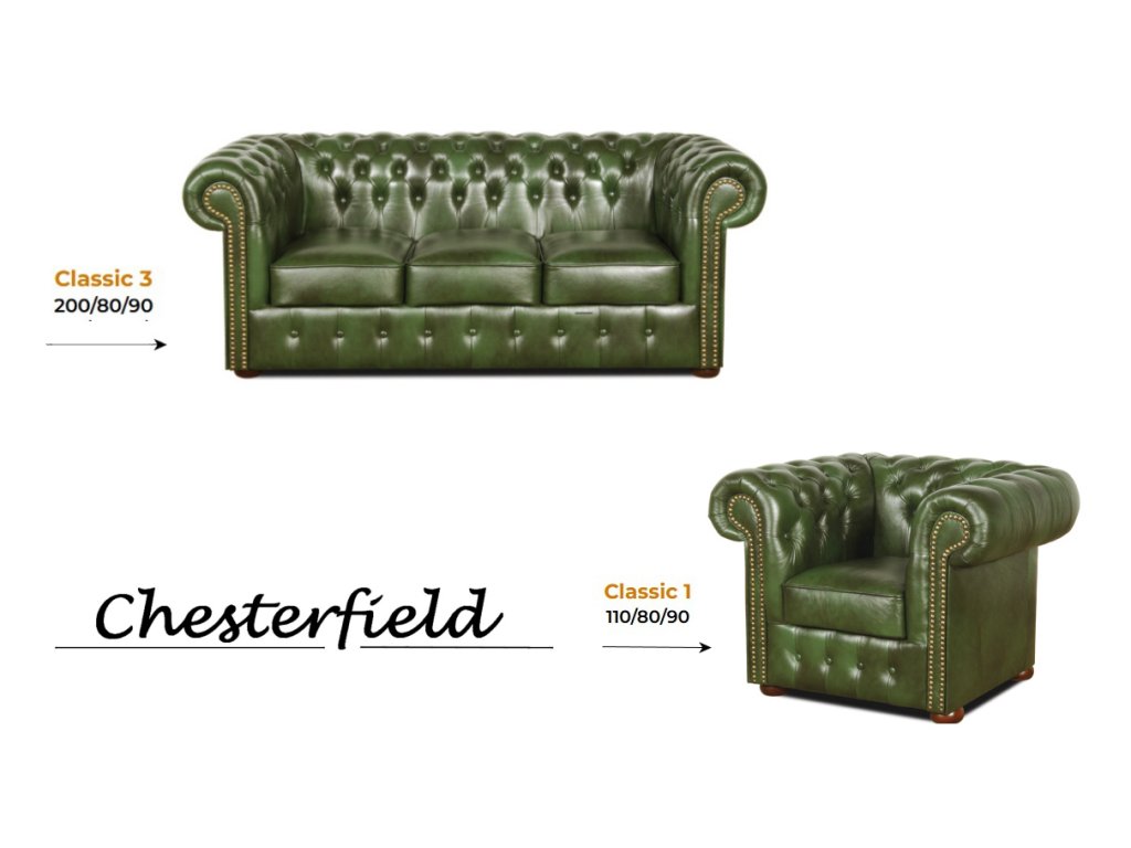 Objevte nadčasovou eleganci a prvotřídní pohodlí s koženými křesly a pohovkami Chesterfield. Každý detail od klasického hlubokého prošívání až po luxusní pravou hovězí kůži zaručuje jedinečný styl, který povýší váš domov či komerční prostor na novou úroveň. Vynikající řemeslné zpracování zaručuje nejen krásu, ale i dlouhou životnost. Pohovky Chesterfield jsou k dispozici v různých velikostech od křesel, dvoumístných a třímístných pohovek, až po prostorné čtyřmístné, rohové a atypické varianty.