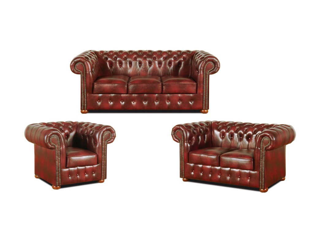 Sedací souprava Chesterfield Classic 3+2+1 kůže bordó