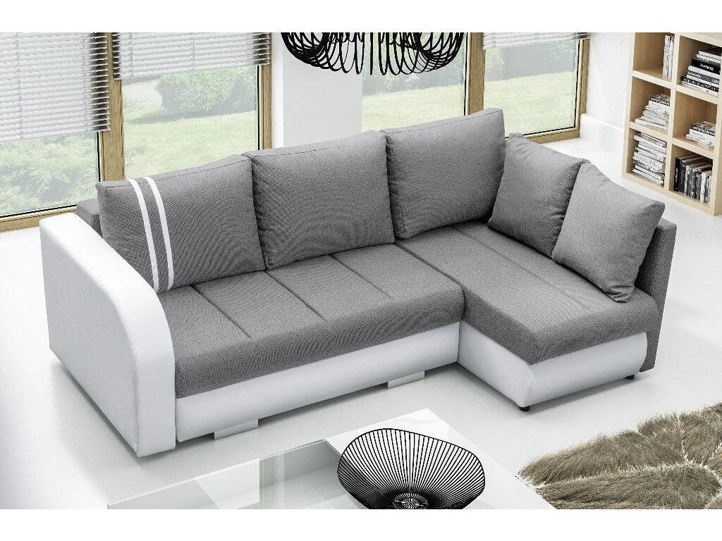 Rohová sedací souprava Citizen, je vzhledem ke svým rozměrům, vhodná do menších pokojů. Sedací souprava je rozkládací a má také 2 praktické úložné prostory. Jednoduchým rozložením vznikne dostatečně velké lůžko vhodné k příležitostnému spaní. Výplň sedáku tvoří kombinace pružin faliste s kvalitní PUR pěnou. Tato kombinace zajistí pohodlné sezení. Sedací souprava je potažena kvalitní látkou v kombinaci s bílou EKO kůží. Tuto sedačku nabízíme v několika barevných variantách. V ceně sedací soupravy je 5 opěrných polštářů. Ostatní vyobrazené dekorace nejsou v ceně.