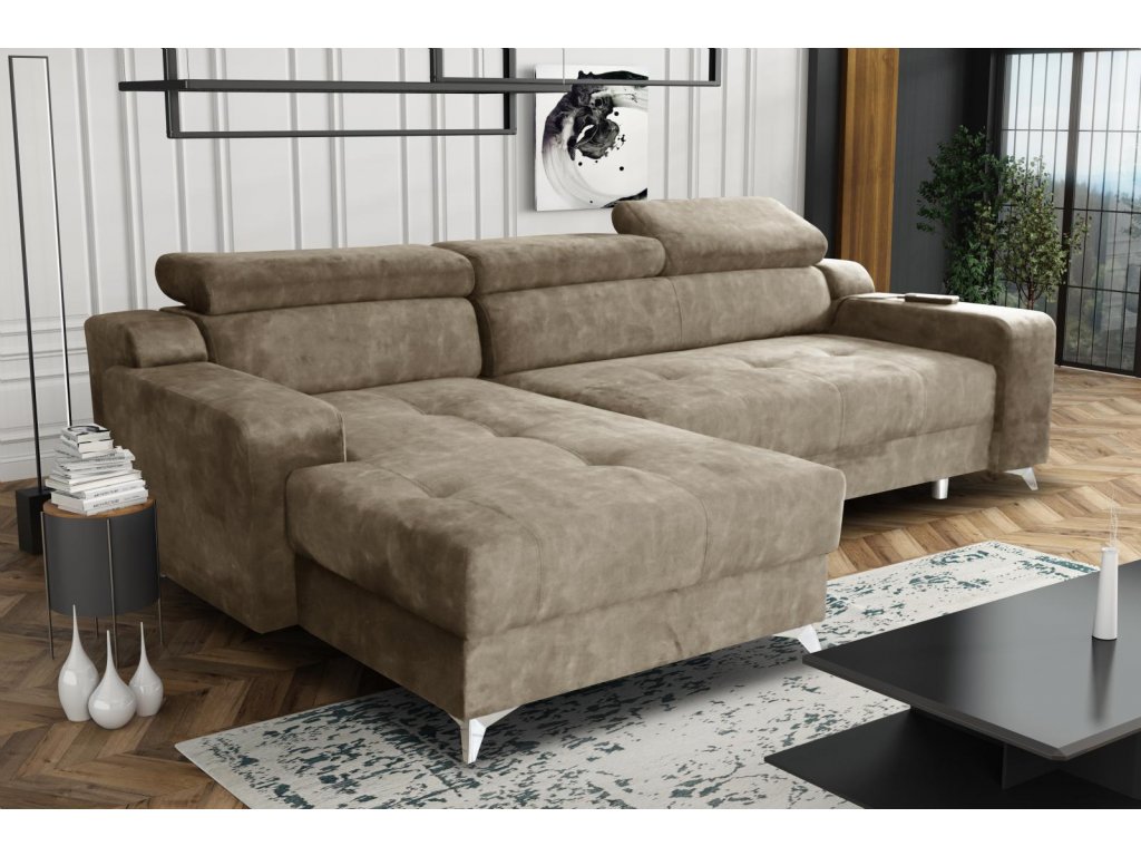 Sedací souprava Darina osloví každého, kdo preferuje moderní vzhled a zároveň pohodlí a praktičnost. Je potažena kvalitní potahovou látkou s elegantním prošitím na sedací části. Naprostou novinkou u této sedací soupravy je elektrický rozklad. Po stisknutí ovládacího tlačítka se vysune sedací část do polohy pro spaní. Má také velmi praktický úložný prostor, který můžete využít např., na lůžkoviny. Pohodlí při sezení zajišťuje výplň sedáků, kterou tvoří kombinace pružin faliste s kvalitní PUR pěnou. Komfort a pohodlí při odpočinku zvyšuje polohovací opěrka hlavy. Sedací soupravu nabízíme v levém i pravém provedení. Vyobrazené dekorace a doplňky nejsou v ceně sedací soupravy. Fotografie sedací soupravy v rozkladu jsou pouze ilustrační, správný odstín je zobrazen na úvodní fotografii.