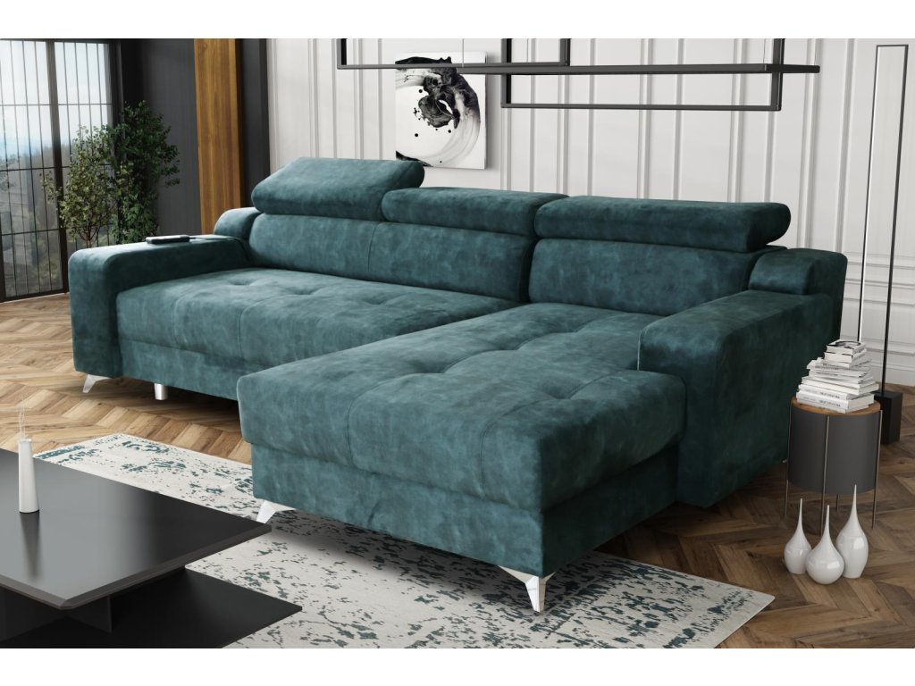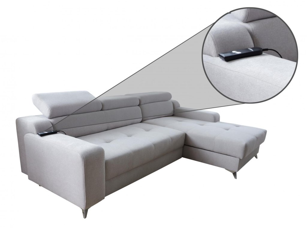 Sedací souprava Darina osloví každého, kdo preferuje moderní vzhled a zároveň pohodlí a praktičnost. Je potažena kvalitní potahovou látkou s elegantním prošitím na sedací části. Naprostou novinkou u této sedací soupravy je elektrický rozklad. Po stisknutí ovládacího tlačítka se vysune sedací část do polohy pro spaní. Má také velmi praktický úložný prostor, který můžete využít např., na lůžkoviny. Pohodlí při sezení zajišťuje výplň sedáků, kterou tvoří kombinace pružin faliste s kvalitní PUR pěnou. Komfort a pohodlí při odpočinku zvyšuje polohovací opěrka hlavy. Sedací soupravu nabízíme v levém i pravém provedení. Vyobrazené dekorace a doplňky nejsou v ceně sedací soupravy.Fotografie sedací soupravy v rozkladu jsou pouze ilustrační, správný odstín je zobrazen na úvodní fotografii.
