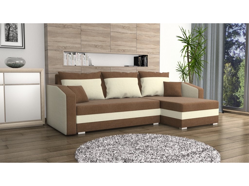 Sedací souprava Fabian je příjemným spojením elegance, funkčnosti a příznivé ceny. Sedací souprava je vyrobená v jednoduchém nadčasovém designu. Díky svým rozměrům je vhodná i do menších pokojů. Je velmi pohodlná a zároveň praktická. Velkou předností sedací soupravy, je univerzální použití. Tzn., že si ji můžete podle potřeby sestavit jako levou nebo pravou, což je výhoda při zařizování obývacího pokoje. Nemusíte přemýšlet, do jakého rohu sedací soupravu postavíte. Jednoduše si ji podle potřeby přizpůsobíte. Výplň sedáku tvoří kvalitní PUR pěna. Praktickou stránku sedací soupravy zajišťuje možnost rozložení k občasnému přespání návštěvy a samozřejmostí je i úložný prostor. Sedací soupravu nabízíme v několika barevných provedeních. Vyobrazené doplňky a dekorace nejsou v ceně.Výška nožek je 2,8 cm.