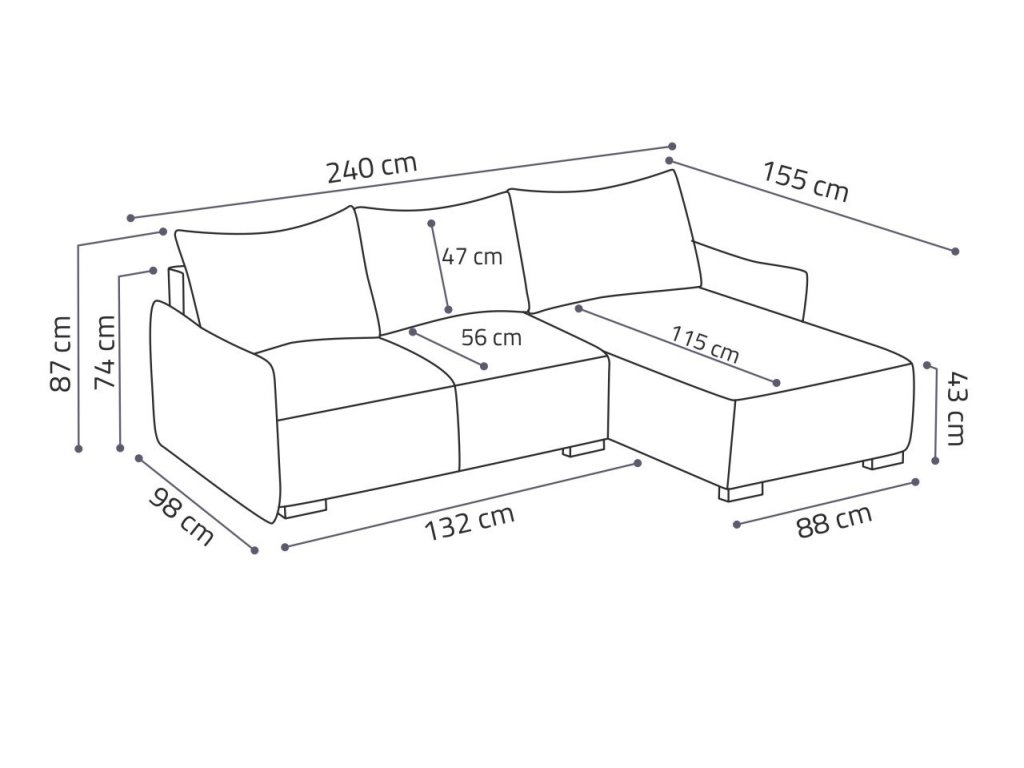 Sedací souprava Forest je vyrobena v jednoduchém elegantním designu, který se hodí do všech interiérů. Její velkou předností je univerzální možnost sestavení. Tzn. že podle potřeby můžete mít levou nebo pravou stranu, což je výhoda při zařizování obývacího pokoje. Nemusíte přemýšlet do jakého rohu sedací soupravu postavíte a jednoduše si ji podle potřeby přizpůsobíte. Sedací souprava je rozkládací. Jednoduchým rozložením vytvoříte dostatečně velké lůžko k příležitostnému přespání Vaší návštěvy. Samozřejmostí je i praktický úložný prostor, který můžete využít např. na lůžkoviny. Sedací souprava je potažena kvalitní látkou Neve , která je vyrobena z vysoce kvalitní příze, je měkká a příjemná na dotek. Látka je pevná a oděruvzdorná, snadno se čistí a udržuje v perfektním stavu. Výplň sedáků tvoří kombinace vlnitých pružin s kvalitní HR pěnou. Pro pohodlí při sezení a odpočinku, je sedací souprava vybavena 3 objemnými polštáři. Správná barva potahové látky je zobrazena na první a druhé fotografii. Ostatní fotografie jsou pouze ilustrační.