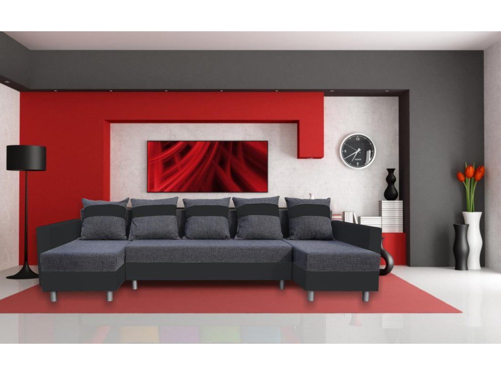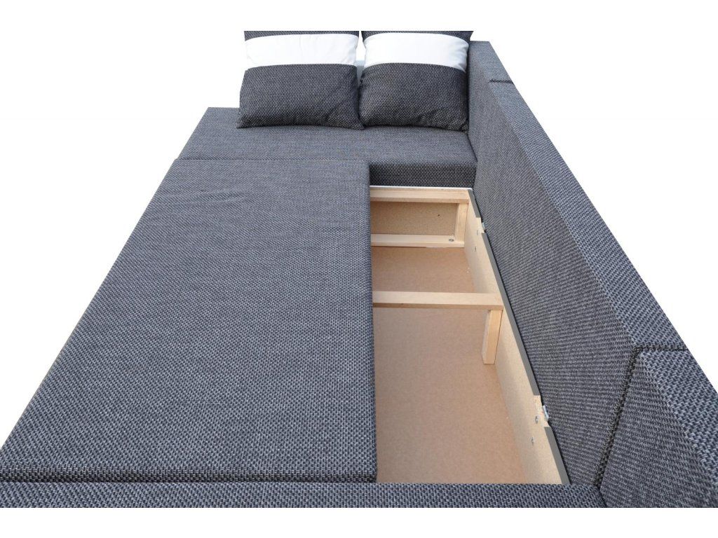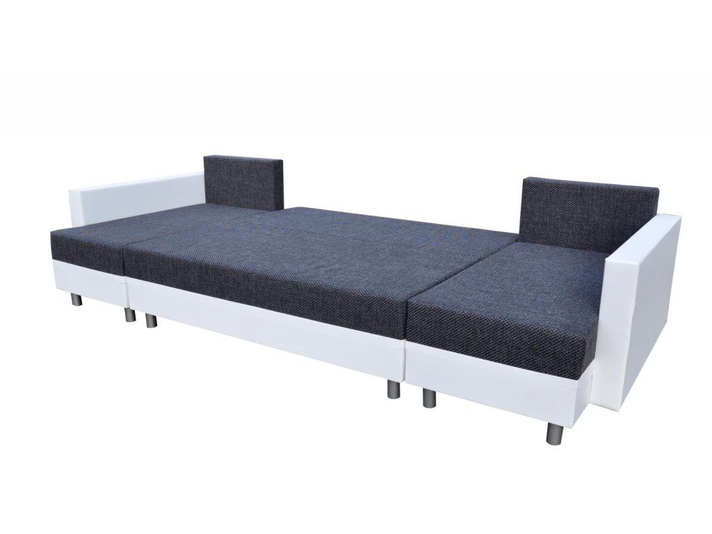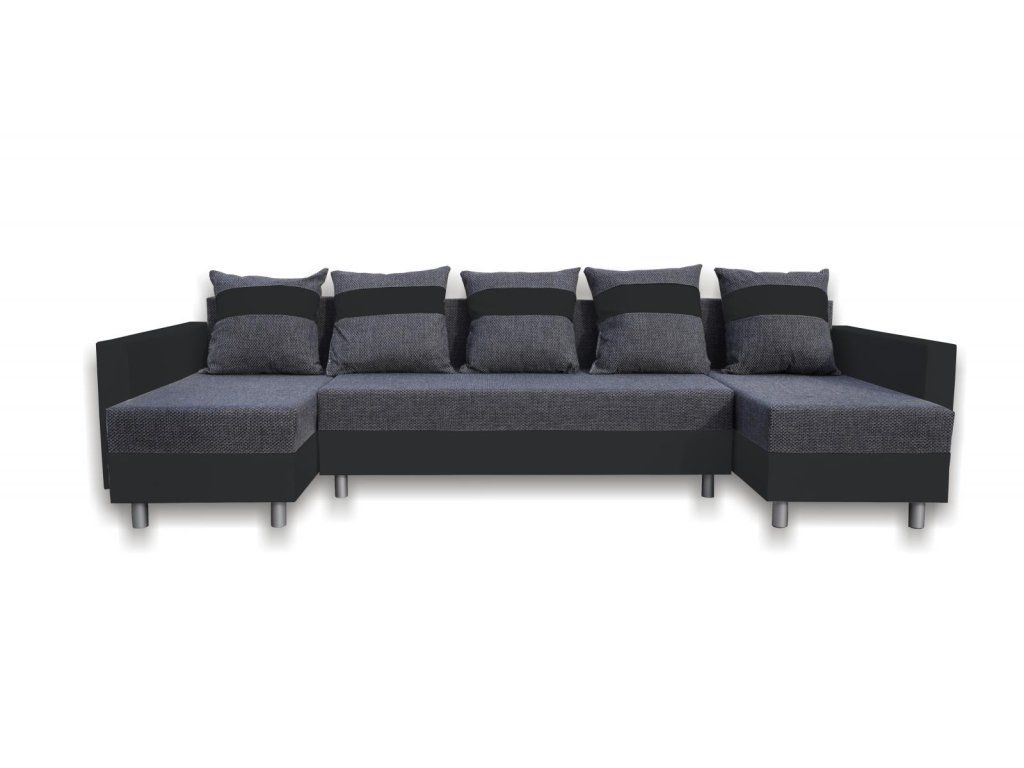 Sedací souprava Frank, konstruovaná do tvaru U, je ideálním řešením pro milovníky jednoduchých a moderních tvarů. Sedací souprava je vybavená rozkladem se sklopným zadním čelem. Nožky sedací soupravy jsou plastové. Sedací souprava je potažena kvalitní látkou Baltic 96 v kombinaci s černou koženkou. Zadní část je očalouněna originalním potahem jako sedací část. Po rozložení vznikne lůžko k občasnému spaní o rozměru 110x270 cm. Uvnitř sedací soupravy se nachází úložný prostor na lůžkoviny. Sedací souprava tohoto typu s výklopným zadním dílem rozkládací části není konstrukčně řešena pro umístění ve volném prostoru. Při užívání k sezení musí být přisunuty zadní části ke zdi nebo jiné pevné opěře.