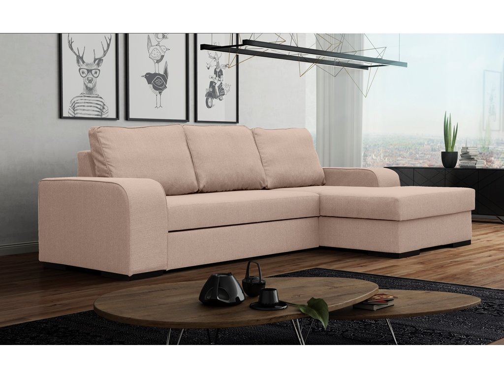 Sedací souprava Frogo v sobě spojuje 2 důležité prvky, které nesmí chybět žádné sedací soupravě. Jsou to pohodlí a praktičnost. Praktickou stránkou této sedací soupravy je možnost rozložení pro příležitostné přespání návštěvy a nepostradatelný úložný prostor, který využijete např. na lůžkoviny. Výplň sedáků tvoří kombinace pružin s kvalitní HR pěnou. Toto spojení zaručuje pohodlí při odpočinku, či posezení s rodinou nebo přáteli. Sedací souprava je potažena kvalitní čalounickou látkou. Záda sedací soupravy jsou začalouněná, takže ji můžete umístit i do prostoru. Vzorek látky, ve které bude sedací souprava dodána, je vyobrazen v doplňkových fotografiích. Sedací soupravu nabízíme v levém i pravém provedení a v několika trendy barvách. Vyobrazené doplňky a dekorace nejsou v ceně.